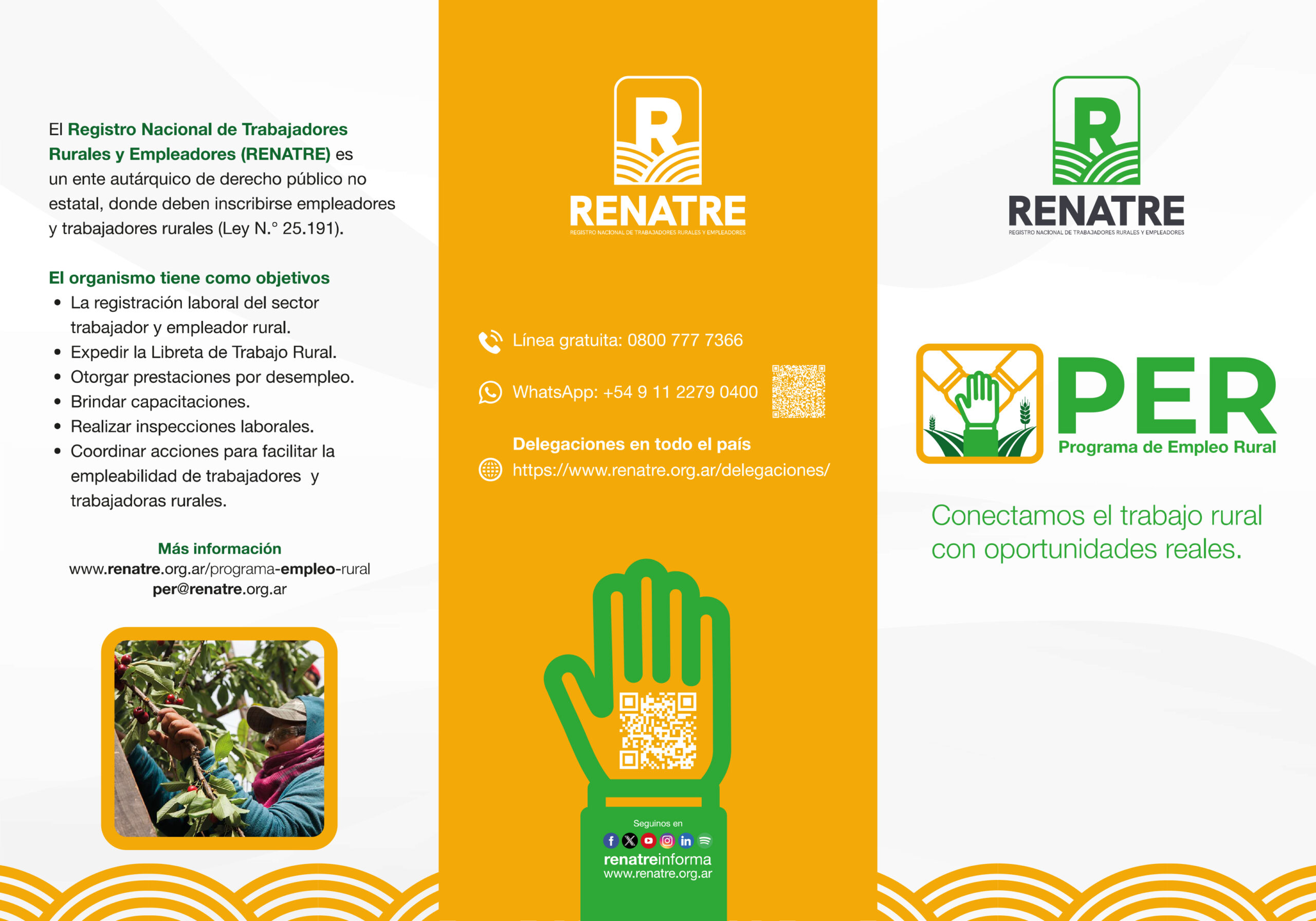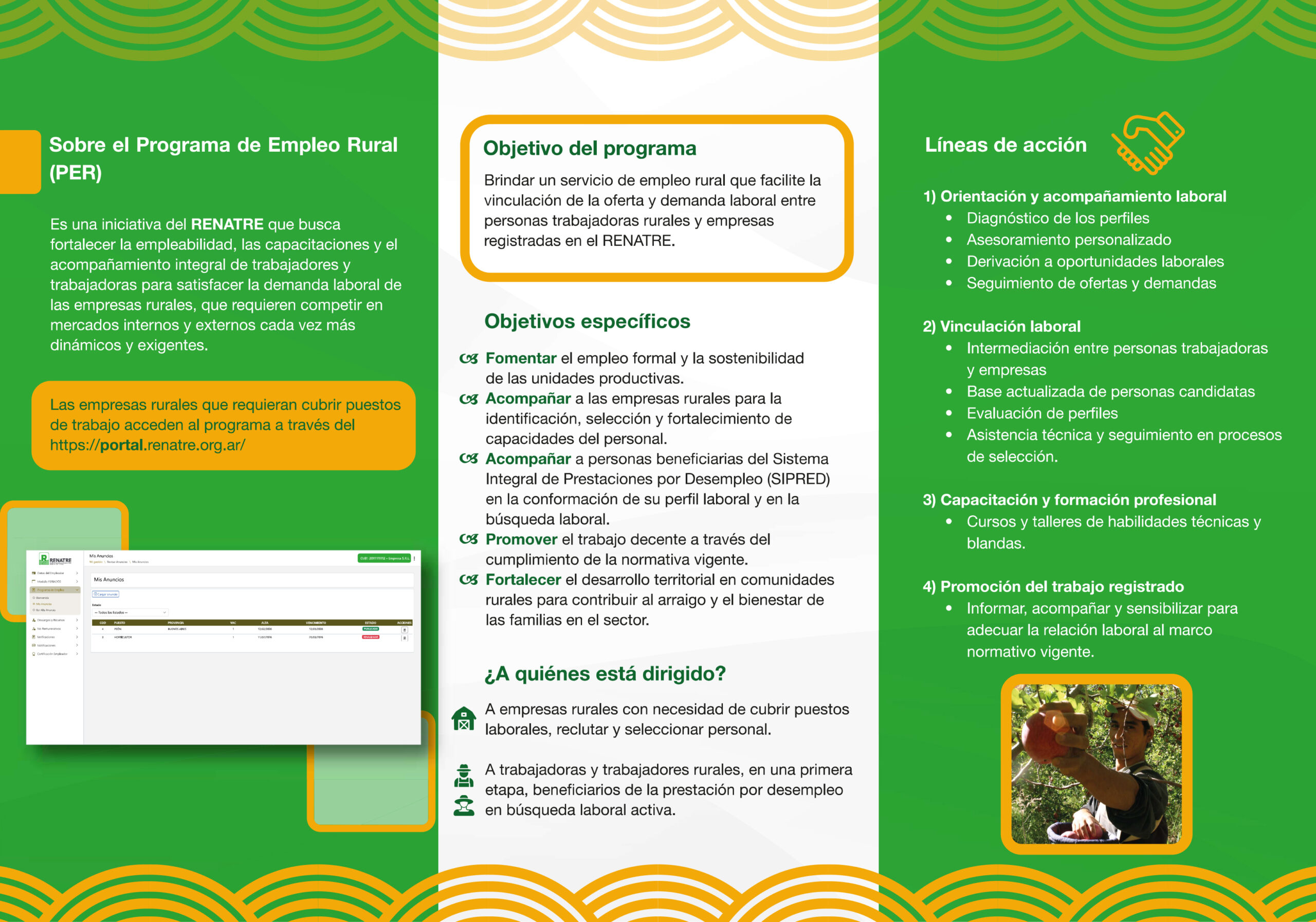 Además, el RENATRE impulsa el Programa de Empleo Rural (PER), una plataforma que conecta empleadores con trabajadores capacitados.