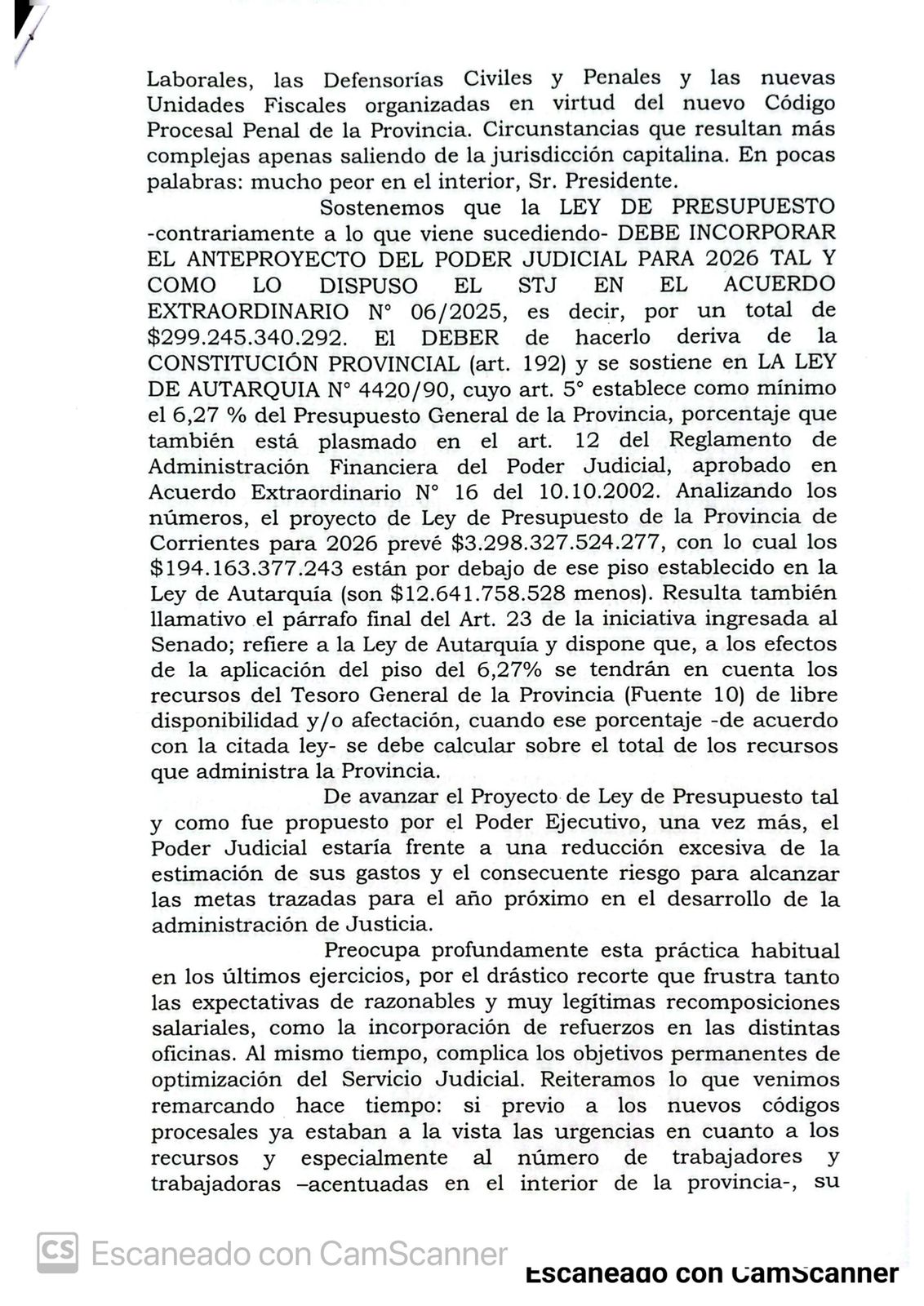 Refrescamos la memoria de legisladores y ministros de la Corte provincial sobre la Constitución Provincial y la Ley de Autarquía (N°4.420), fundamentales para la imprescindible garantía de independencia del Poder Judicial, la división de poderes, la República”, manifestaron.