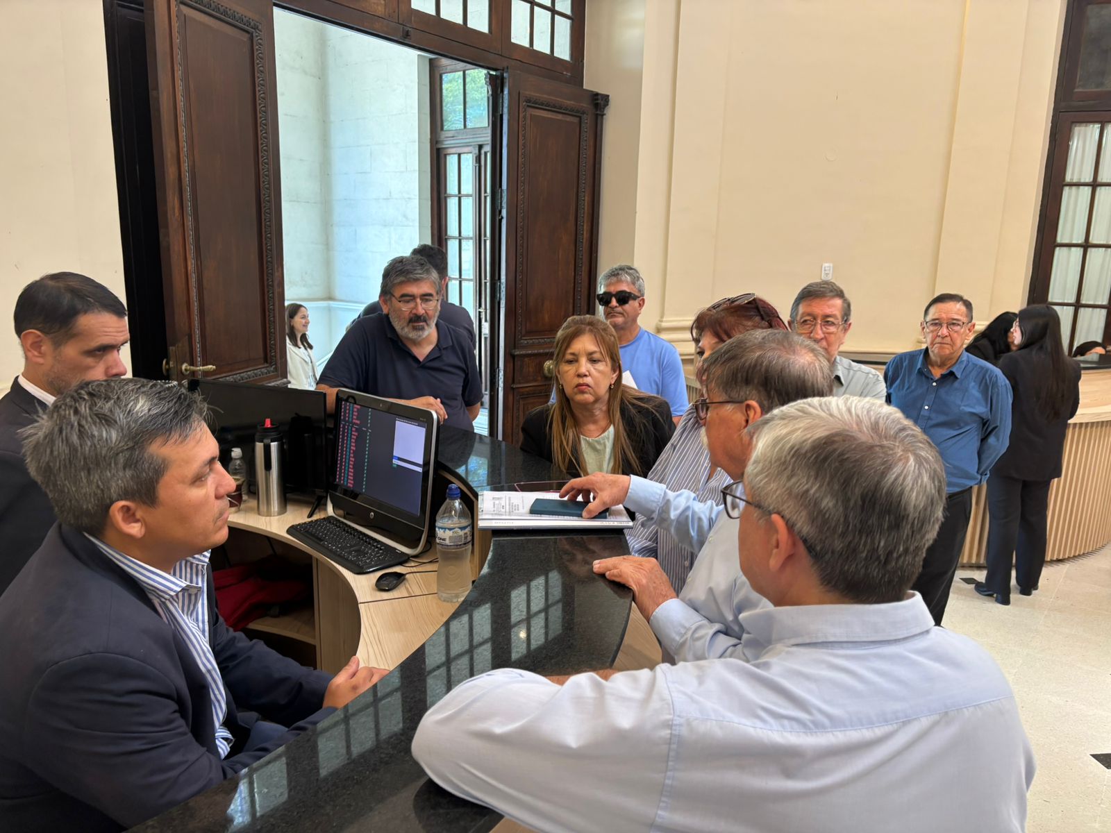 Acompañados por un grupo de trabajadores, miembros de Comisión Directiva del Sindicato de Trabajadores Judiciales de Corrientes (SITRAJ) llegaron a la Legislatura y presentaron el petitorio a la Cámara Alta, donde ingresó el proyecto de Presupuesto General de la Provincia para el año venidero, con un drástico recorte (de casi 36%) a las previsiones del Poder Judicial.