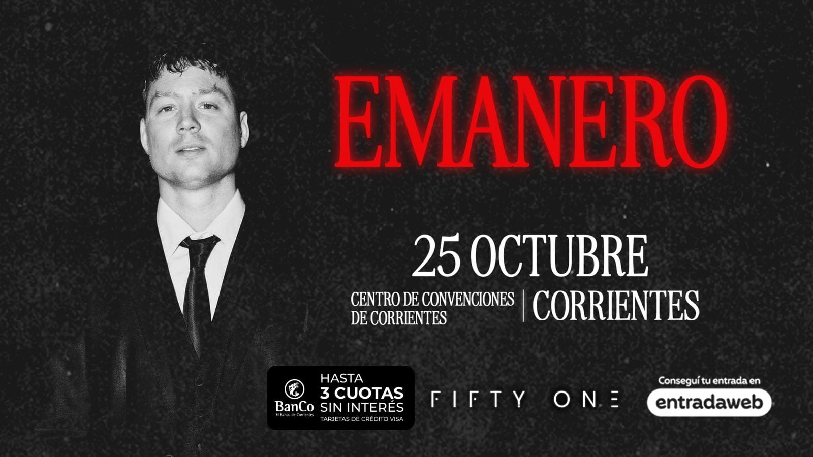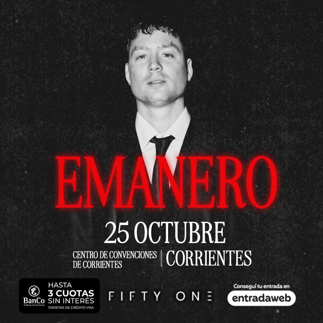 En esta oportunidad se trata de Federico Gianonni, conocido artísticamente como Emanero, quien se presentará en el Centro de Convenciones de Corrientes, el viernes 25 de octubre a las 21 horas.