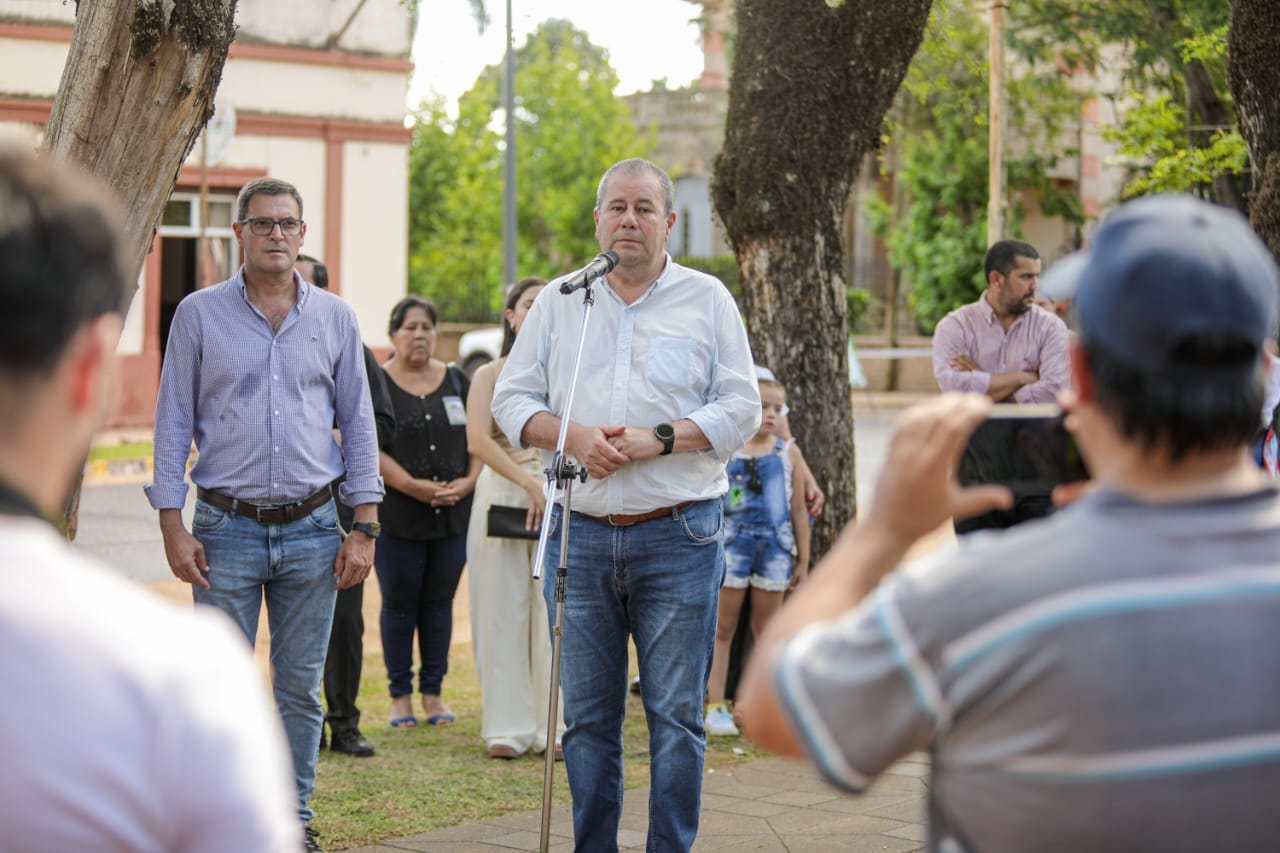 El gobernador de Corrientes, Gustavo Valdés, visitó ayer la localidad de Alvear para efectuar la entrega oficial de un moderno tren de asfalto, en un acto que se realizó en la plaza 9 de Julio.