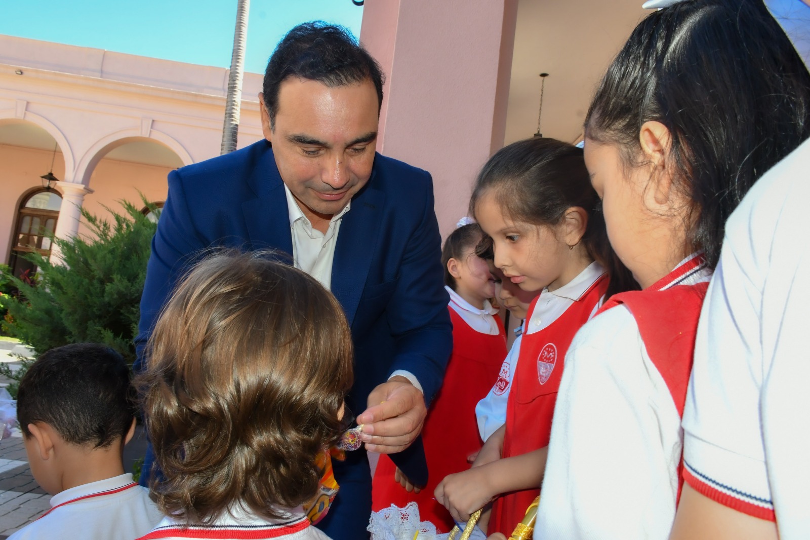 “Recibir esta visita de niños que conocen la Casa de Gobierno es un gusto, y valoramos especialmente el trabajo de los maestros que acompañan y enseñan el significado de estas costumbres”, sostuvo.