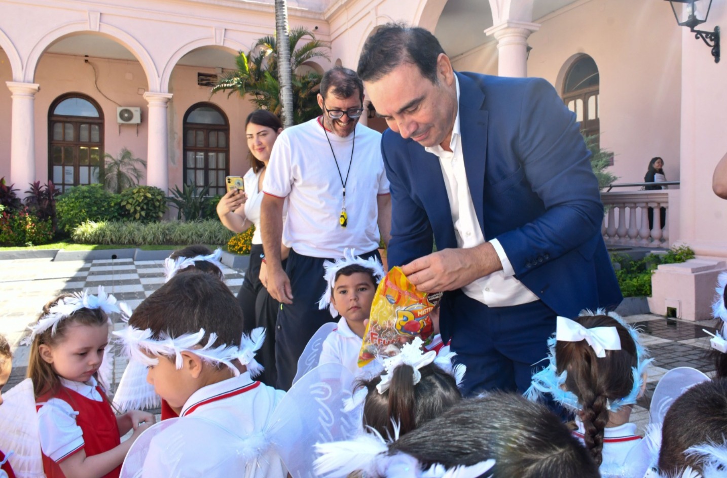 El Mandatario expresó su satisfacción por la visita y destacó el valor cultural y religioso de esta costumbre popular. “Es un gusto tener tan gratas visitas, pequeñas pero gigantes a su vez. Muy lindo poder estar con ellos, que nos vienen a visitar y a saludar en Casa de Gobierno”, señaló.