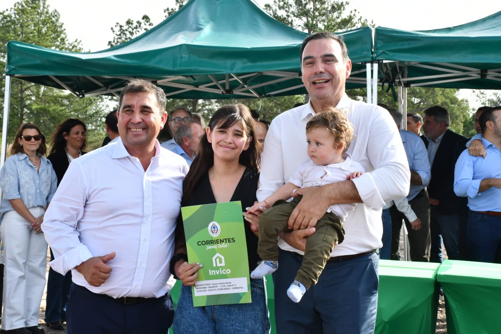 El gobernador de Corrientes, Gustavo Valdés, hizo entrega ayer de 12 unidades habitacionales pertenecientes al Programa Provincial “Oñondivé” en el barrio “3 de Mayo” de la localidad de Cruz de los Milagros. Y, a su vez, firmó con la Municipalidad un convenio por 10 viviendas más.