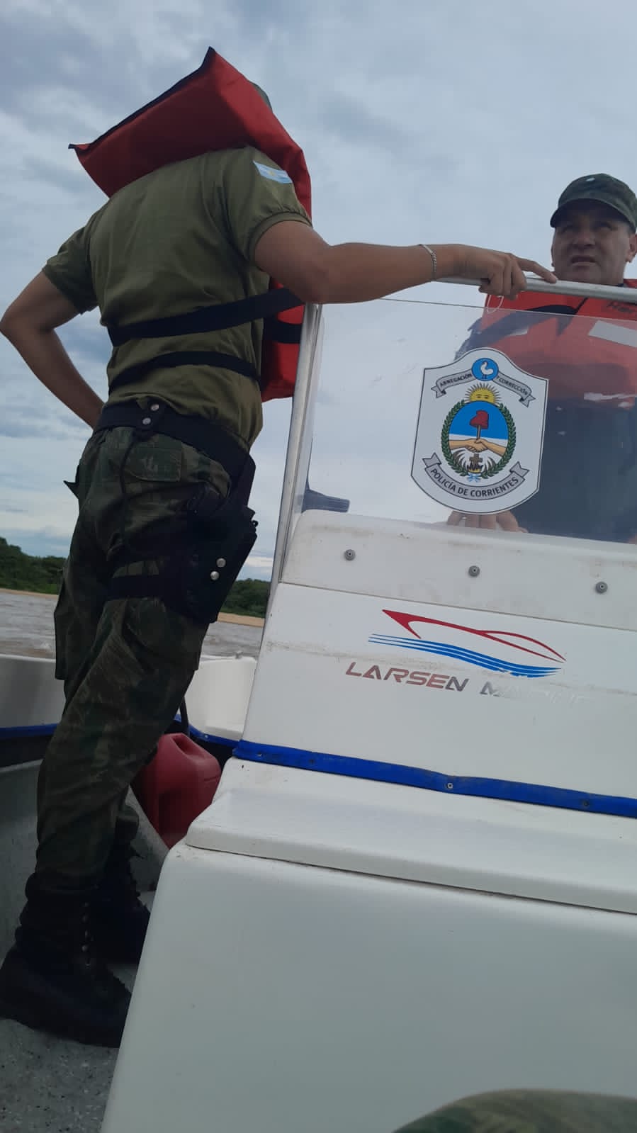 El rastreo se realiza en dos embarcaciones de la Policía de Corrientes, junto a otras dependencias de esa ciudad que se encuentran rastrillando zonas ribereñas. Se cuenta con la colaboración del personal de Prefectura Naval Argentina, Defensa Civil, Bomberos Voluntarios, Flora y Fauna, y personas que navegan en embarcaciones civiles en la zona.