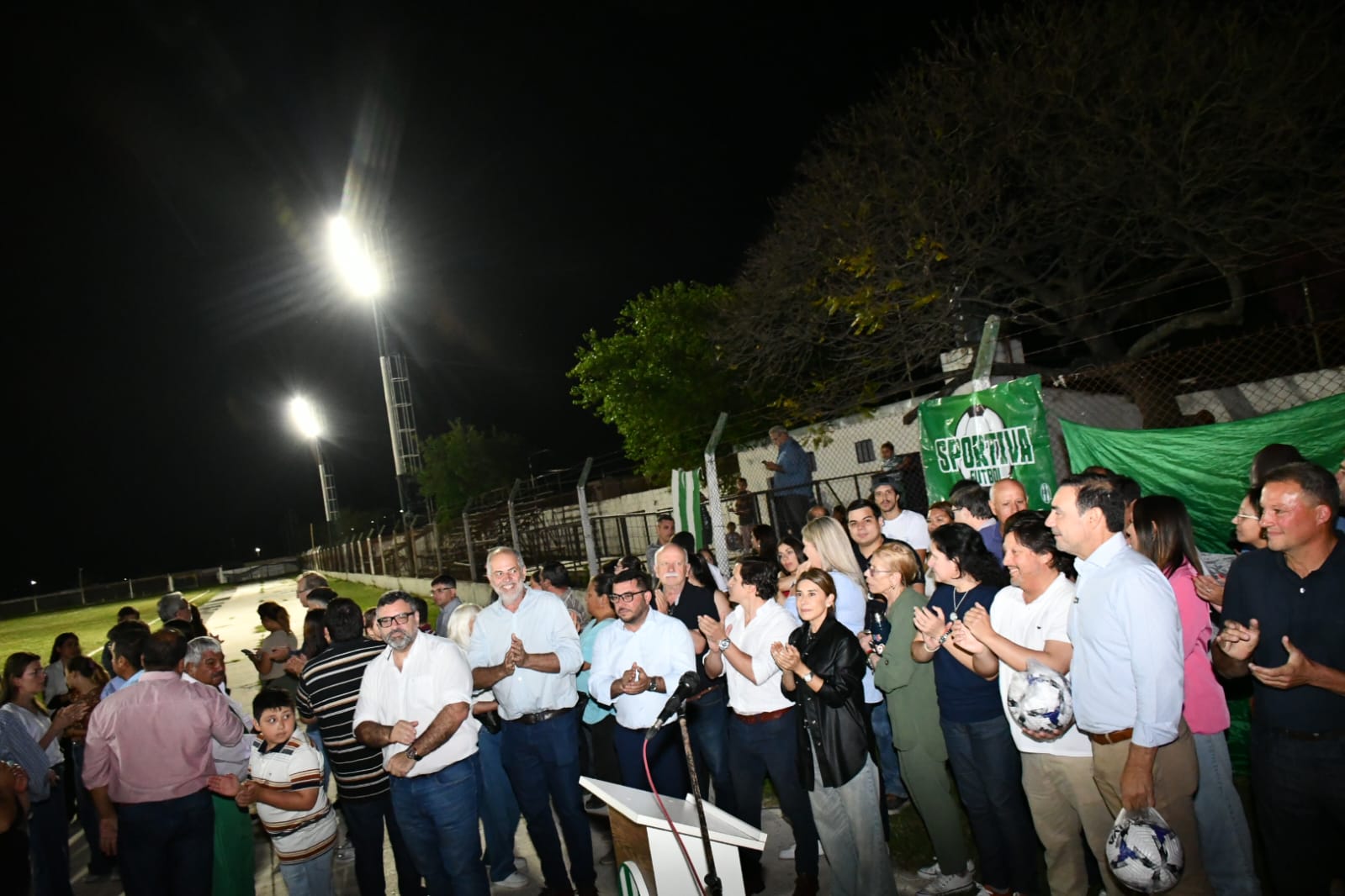 En una nueva visita a la ciudad de Esquina, el gobernador de Corrientes, Gustavo Valdés, acompañado del gobernador electo e intendente de Ituzaingó, Juan Pablo Valdés, inauguraron el viernes la iluminación del Club Sportiva, donde valoró “la función social” que cumple Lotería Correntina a través de inversiones de estas características, dotando de mejor infraestructura a las instituciones deportivas de toda la Provincia.