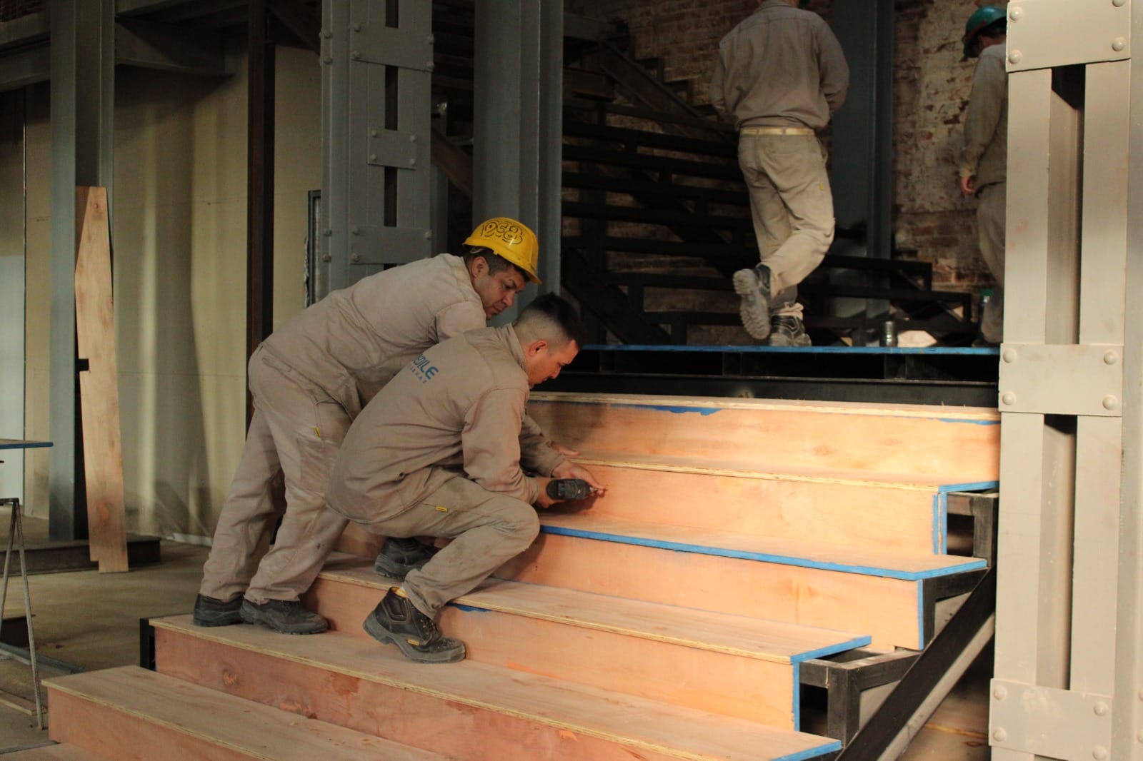 Mientras, los trabajadores también terminan de armar el montacargas, que se utilizará para subir las obras de arte de grandes dimensiones a las salas de exposición.
