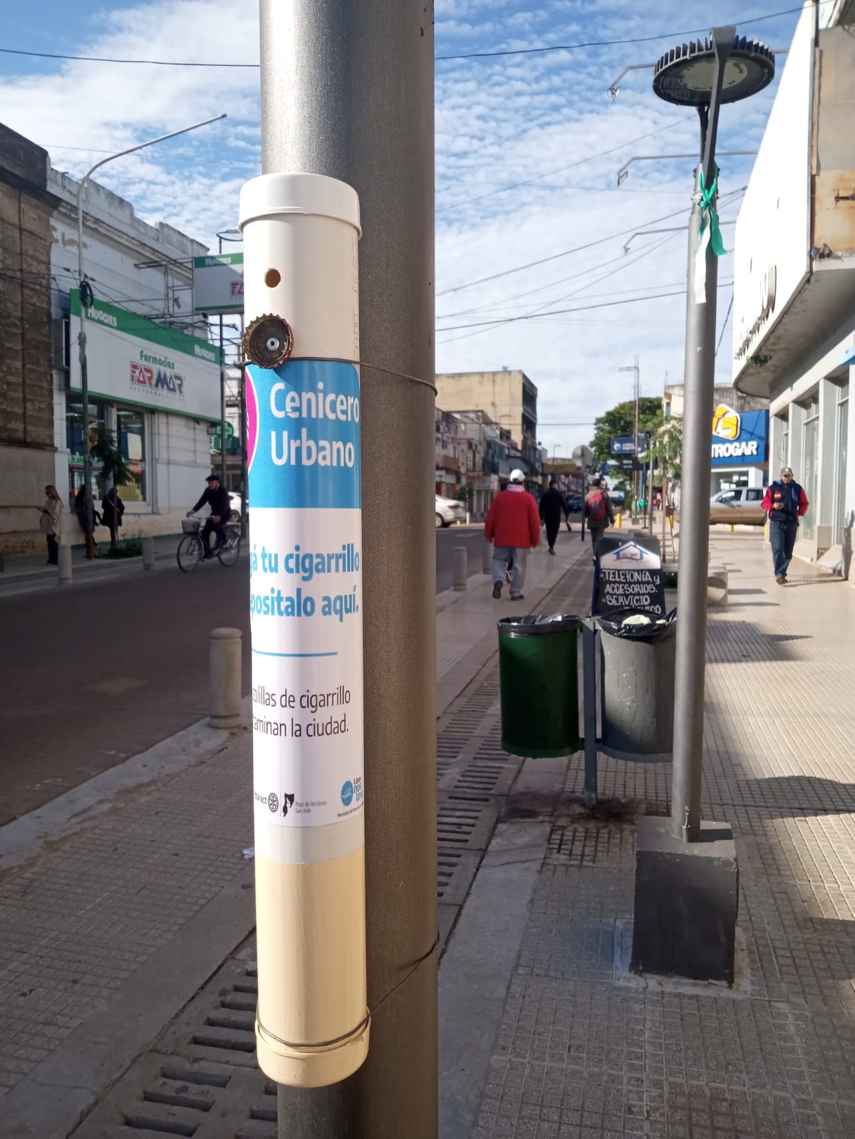 En una nueva acción en favor del medioambiente, el Municipio de Paso de los Libres, a través de la Dirección de Medioambiente, junto con el Rotaract “San José”, colocó ceniceros urbanos en el centro de la ciudad el pasado sábado 18 de mayo.