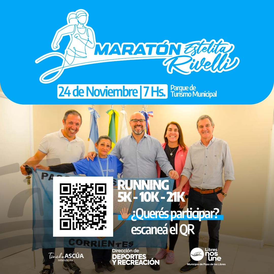 El próximo 24 de noviembre, a las 17 horas, se llevará a cabo la Maratón “Estelita Rivelli” en el Parque Municipal de Turismo de Paso de los Libres. Un evento deportivo organizado por la Dirección de Deportes y Recreación.