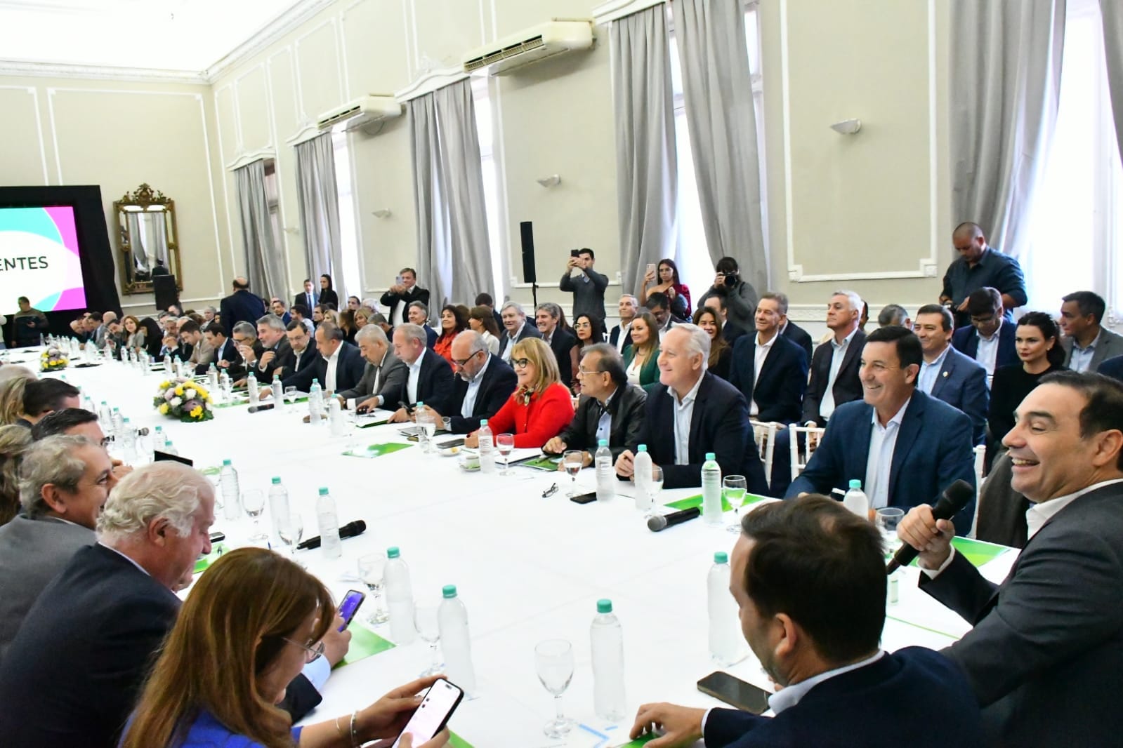 Participaron de la reunión, el vicegobernador, Pedro Braillard Poccard, los ministros, de Hacienda y Finanzas, Marcelo Rivas Piasentini, de Obras y Servicios Públicos, Claudio Polich, de Industria, Mariel Gabur, de Seguridad, Alfredo Vallejos, de Turismo, Alejandra Eliciri, de Desarrollo Social, Adán Gaya, de Educación, Práxedes López, de Salud, Ricardo Cardozo, de Coordinación y Planificación, Miguel Olivieri, de Justicia, Juan José López Desimoni y de Producción, Claudio Anselmo; También lo hicieron, la presidenta del Banco de Corrientes, Laura Sprovieri, el fiscal de Estado, Horacio Ortega, el intendente de Goya, Mariano Hormaechea, interventores y administradores de entes autárquicos y descentralizados, demás funcionarios provinciales y municipales, legisladores provinciales y nacionales e intendentes de localidades vecinas.