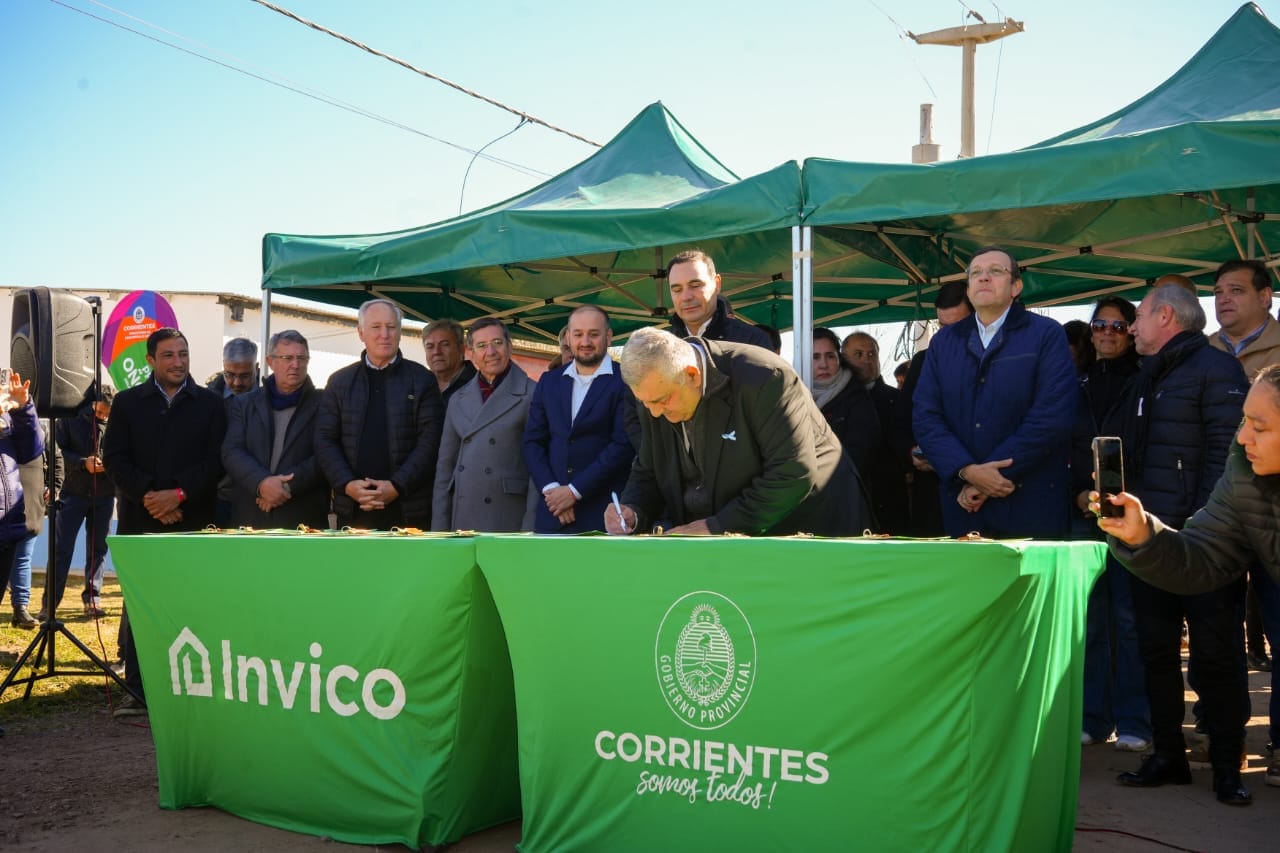 El gobernador de Corrientes, Gustavo Valdés, hizo la entrega de 11 casas en la localidad de San Lorenzo; ocasión en la que firmó un convenio con la Municipalidad anfitriona para la construcción de otras 20, en pos de brindar mejoras a la calidad de vida de los vecinos.