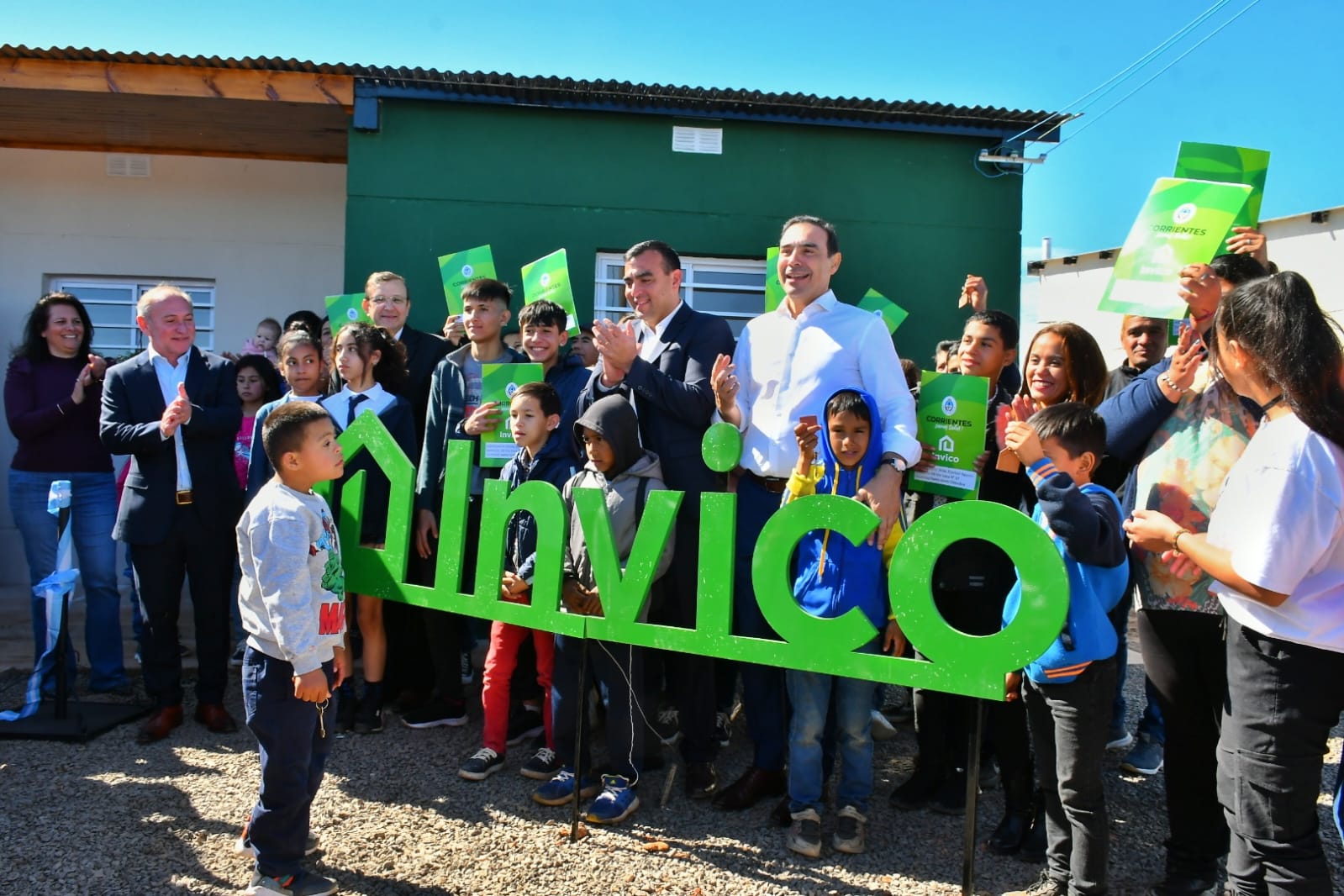 El Gobernador remarcó así que “ahora ya nos comprometimos a hacer 10 casas más, así que ustedes le van a hacer sentir a 10 familias santotomeñas, la felicidad que están sintiendo ahora, sí que les pido que no nos dejen solos en eso”. Sumado a eso destacó que las viviendas de Oñondivé se entregan amobladas y equipadas con los electrodomésticos necesarios, como heladera, cocina, “para que puedan ingresar y disfrutar de esta casa”.