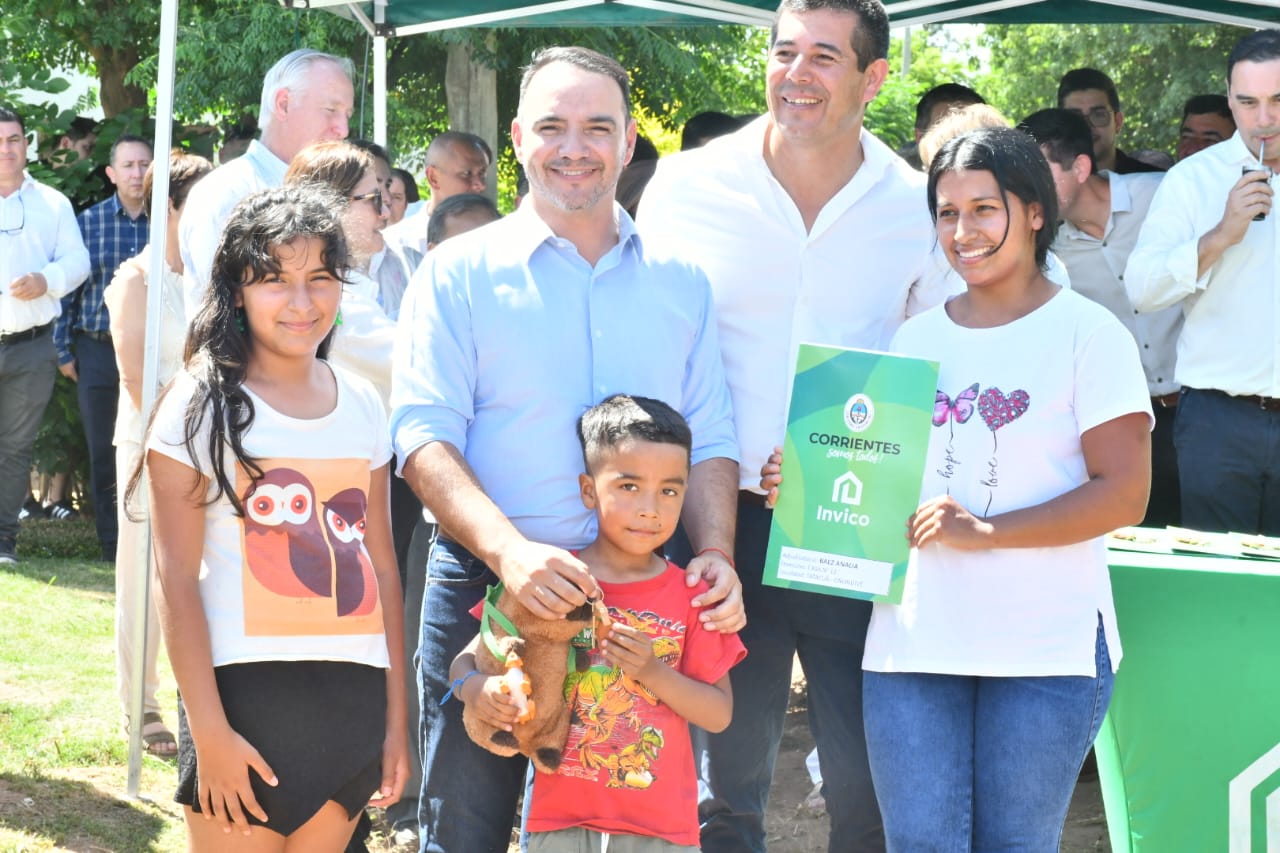 En su visita a la localidad de Tatacuá, el gobernador de Corrientes, Gustavo Valdés, entregó hoy 10 viviendas “Oñondivé”, a la vez que anunció la construcción de 20 hogares más.