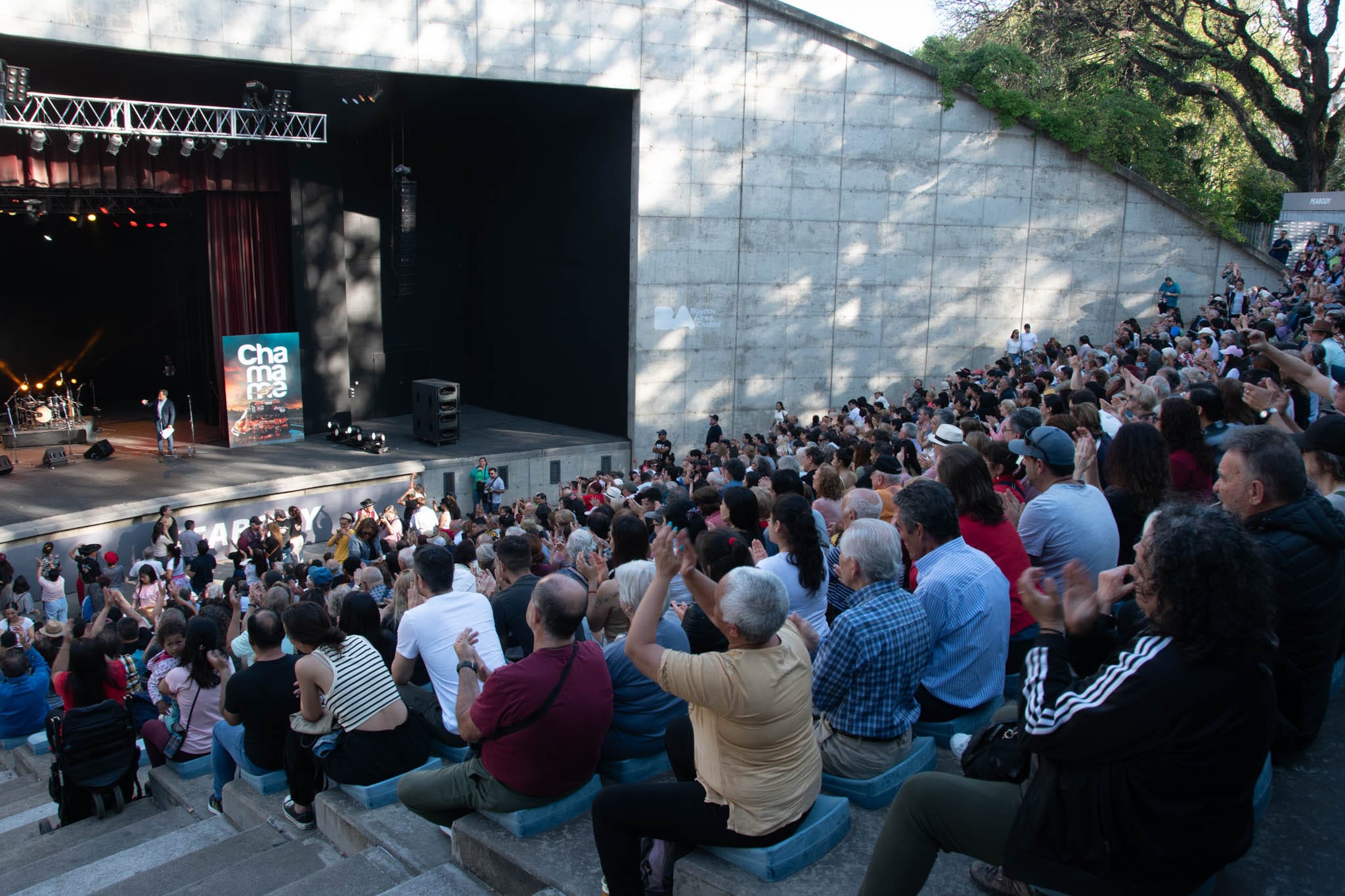 Desde temprano se formaron filas en las inmediaciones del anfiteatro y, para las 16, el público ya había colmado los lugares disponibles en este prestigioso espacio al aire libre. Muchos correntinos que viven en Capital Federal aprovecharon la ocasión para sentirse cerca de sus orígenes, al igual que porteños y provincianos que disfrutan de todo lo que identifica a la cultura chamamecera.