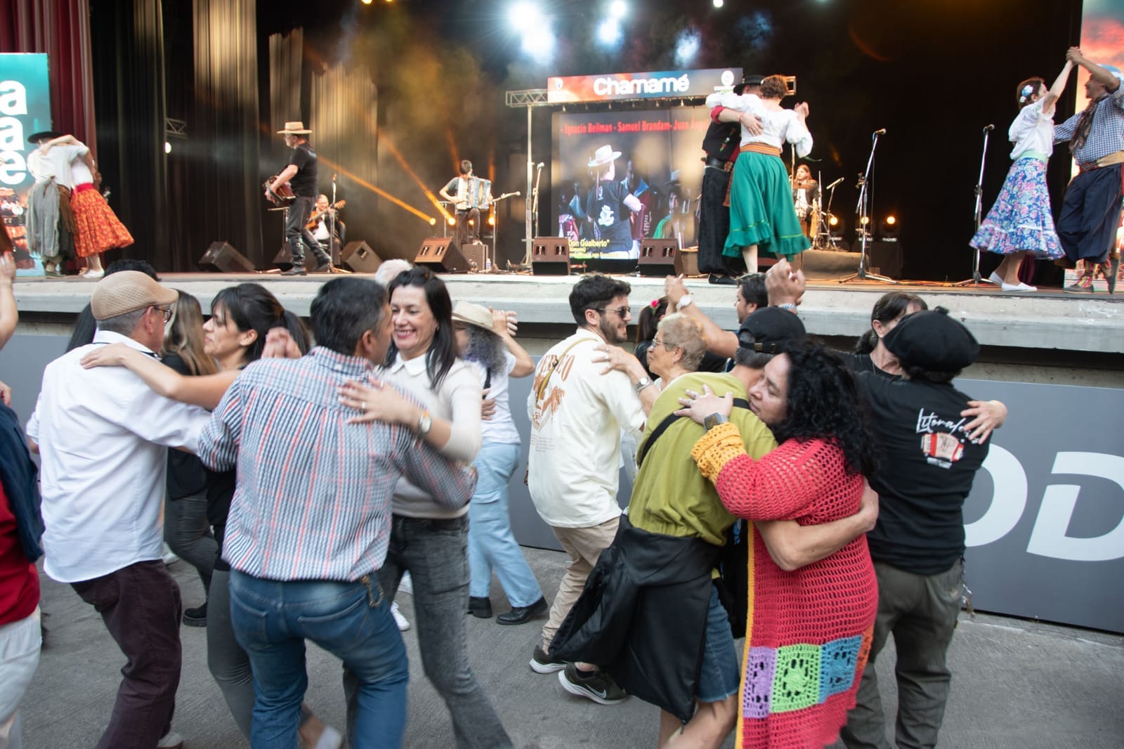Este festival, que reunió a la Nación Chamamecera en la capital del país, continuó con la presentación de Juan y Ernestito Montiel y el Cuarteto de Santa Ana, y no tardó en armarse una gran bailanta al costado del escenario, disfrutando a pleno de cada uno de los temas interpretados por el grupo.