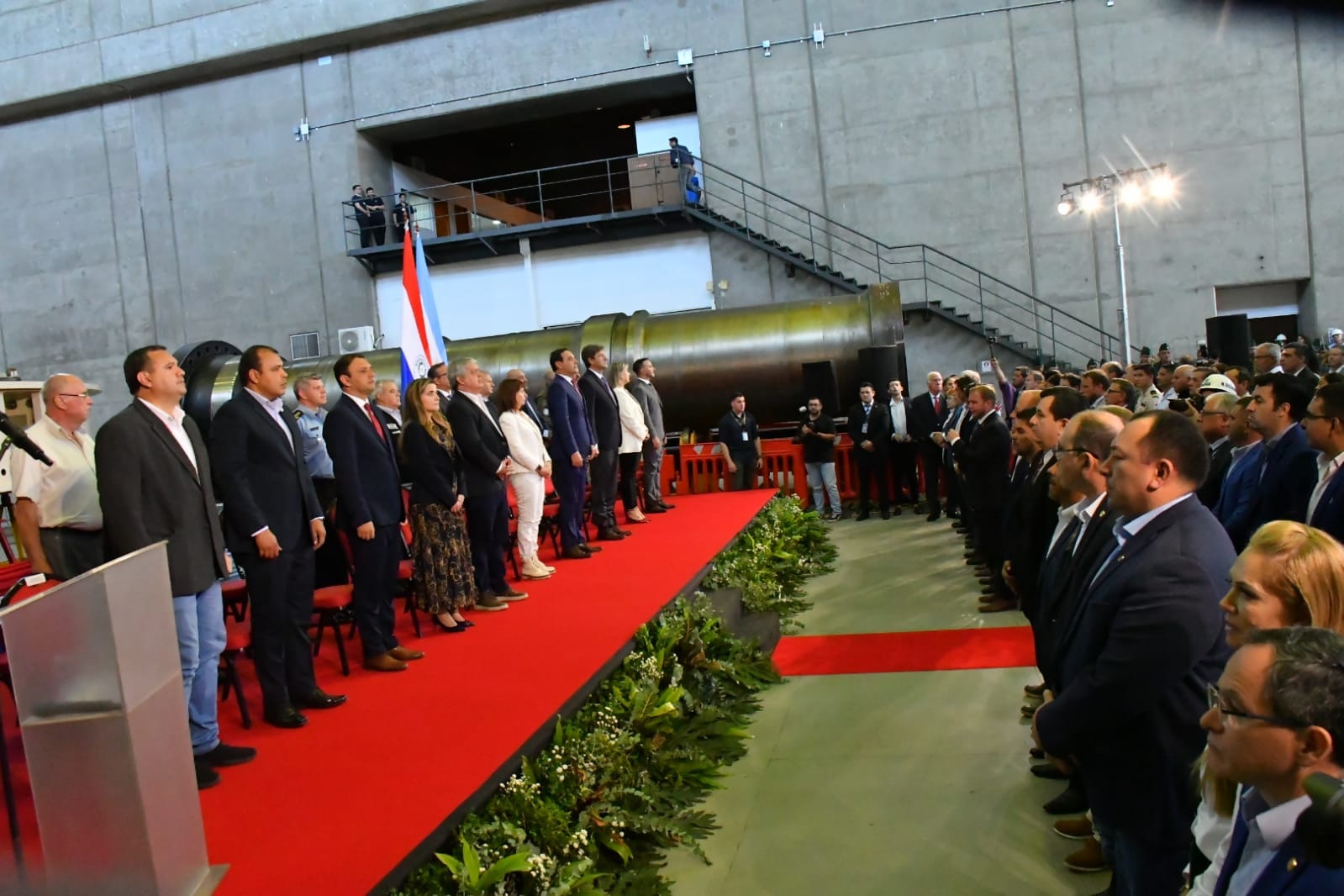El encuentro, realizado sobre el coronamiento de la represa hidroeléctrica, dio inicio con la entonación de los himnos nacionales de Paraguay y de Argentina, a cargo de la Banda de Músicos de la Segunda División de Caballería de San Juan Bautista (Misiones, Paraguay), dando lugar a los discursos de las autoridades mencionadas.