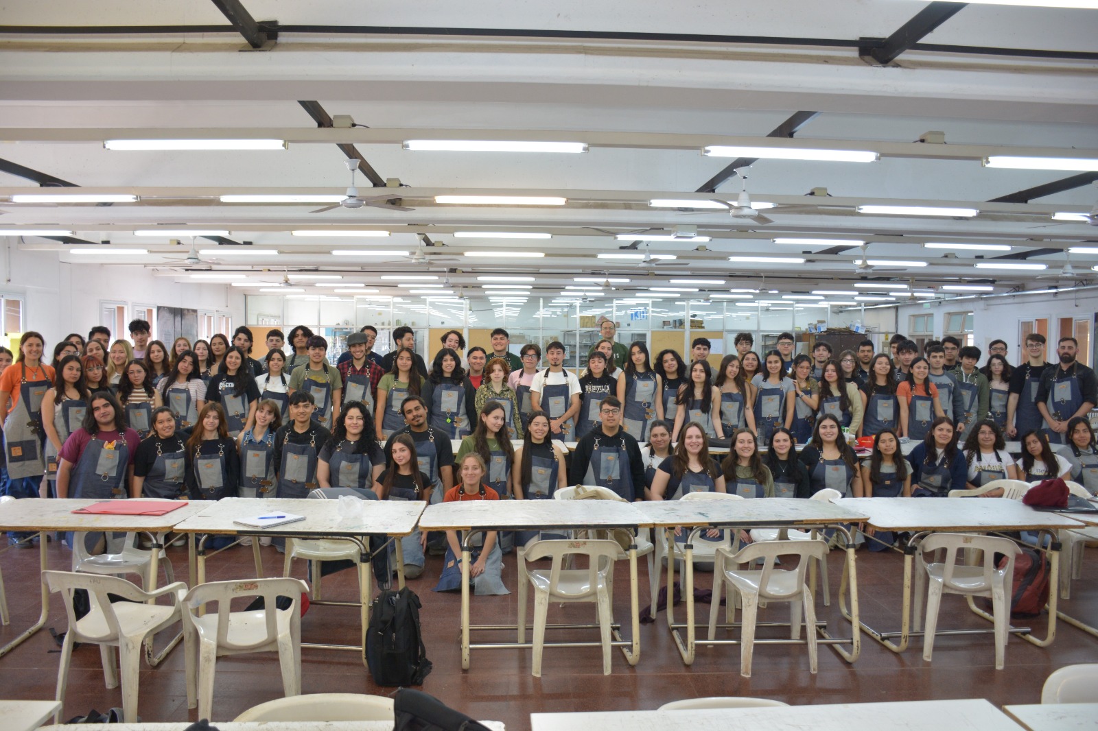 Sobre las mesas se creaban más delantales. Restos de denim chaqueño y cuero de la curtiembre “La Hermida SA” que gentilmente donó dos piezas de cuero enteras, daban forma al trabajo práctico. Y también al sueño.