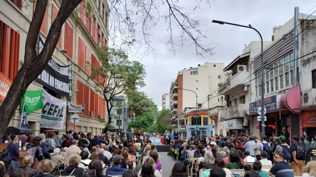 Esta última, que tiene sede sobre la calle Puan, en el barrio porteño de Caballito, protagonizó además una situación particular este lunes. Por la tarde, las autoridades debían hacer entrega de diplomas a algunos egresados. Sin embargo, los estudiantes pidieron hacerlo en la calle, donde además se estaban dando clases públicas a modo de protesta.
