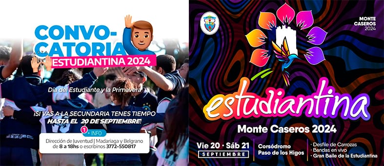 El Municipio de Paso de los Libres invita a todos los estudiantes de Nivel Secundario a participar de la Estudiantina 2024, el sábado 21 de septiembre, celebrando el Día del Estudiante y de la Primavera.
