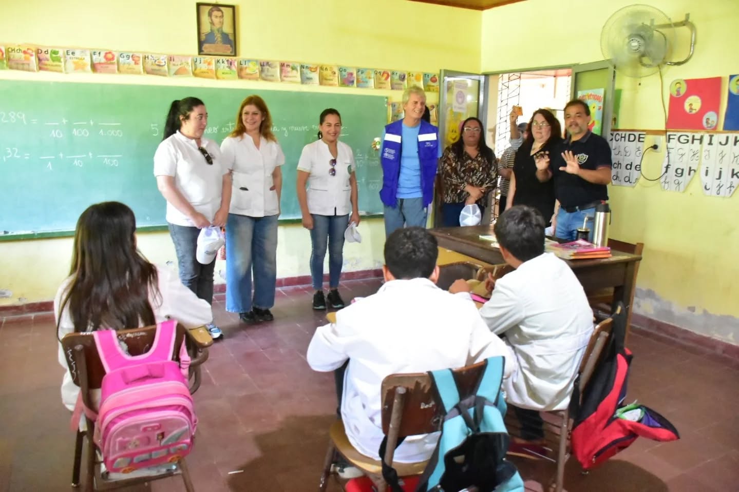 Seguidamente, se trasladaron hacia la Sala de Atención Primaria de la Salud de Rincón Navarro y a la escuela que se ubica enfrente. Consultaron sobre los puestos de notificación de vinchucas. En un grado, conversaron con docentes y con algunos alumnos sobre el conocimiento respecto a esta enfermedad.