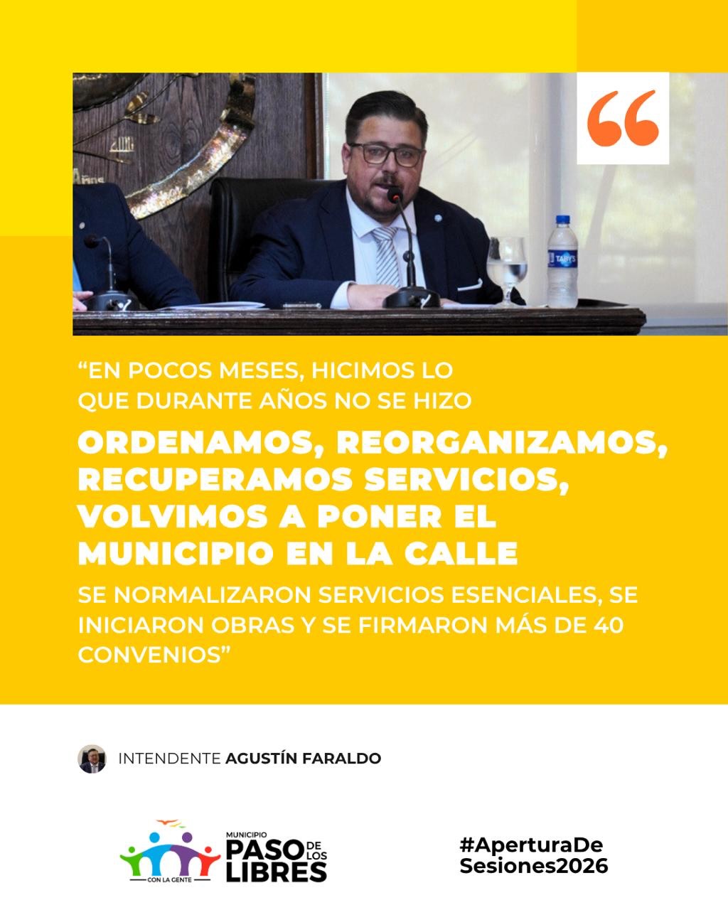 “Señor Presidente del Honorable Concejo Deliberante, Señores Concejales, Autoridades presentes, Fuerzas de Seguridad, Medios de comunicación, Vecinos de Paso de los Libres.