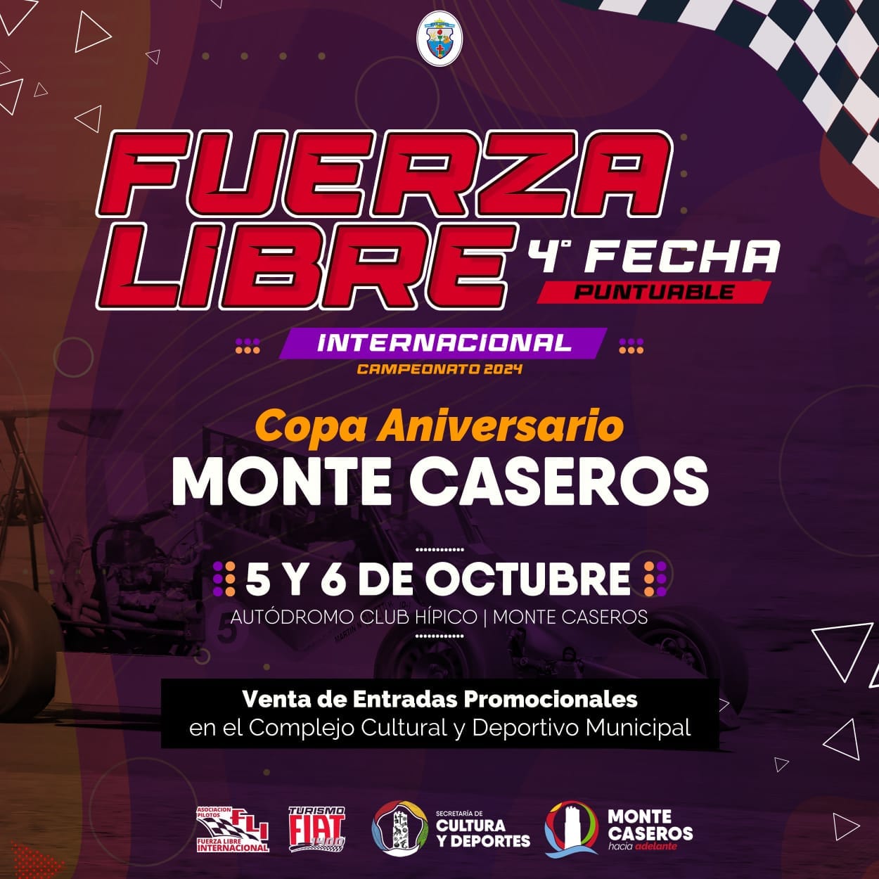 El fin de semana próximo se disputará en Monte Caseros la 4ª fecha puntuable de la Fuerza Libre Internacional “Copa Aniversario Monte Caseros”.