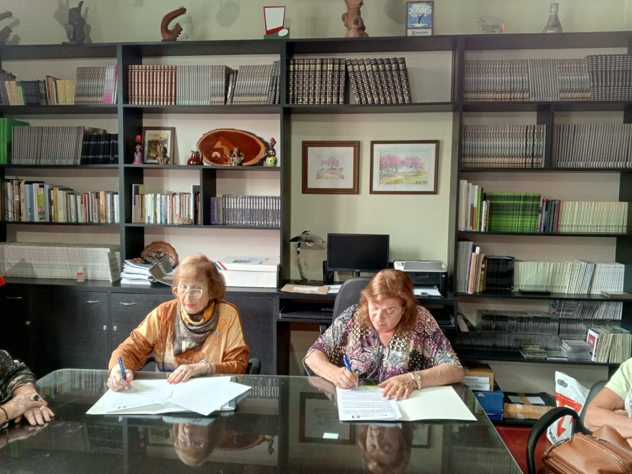 La presidente del Instituto de Cultura de Corrientes, Beatriz Kunin, y la presidente de la Asociación Cultural Bonpland, Aurora Arbelo de Mazzaro, fueron las encargadas de rubricar este acuerdo, acompañadas por el director de Museo de Ciencias Naturales, Raúl Aguirre Barrios, y los integrantes de la entidad bonplaniana.