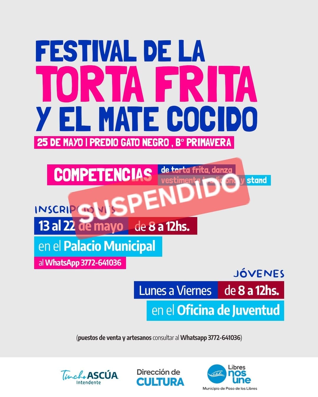 Desde el Municipio de Paso de los Libres se decidió que, debido a las condiciones climáticas adversas, posponer la realización del Festival de la Torta Frita y el Mate Cocido para el domingo 1 de junio.