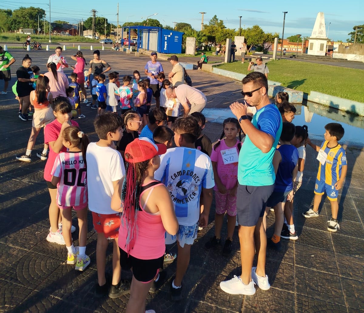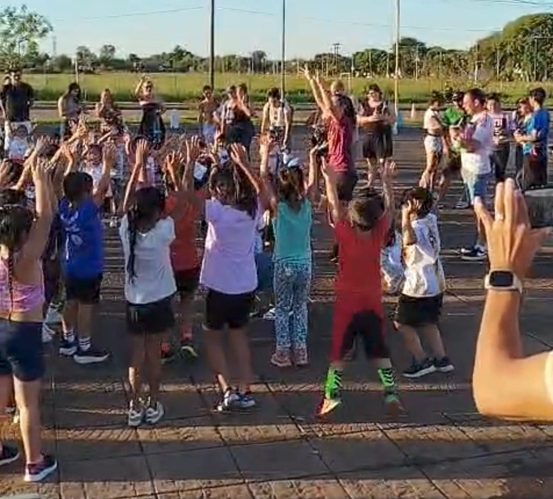 En la previa, la profesora Paola Villanueva, a cargo de la organización, brindó a los chicos y a los padres una charla instructiva sobre alimentación saludable, precalentamiento y la práctica del atletismo.