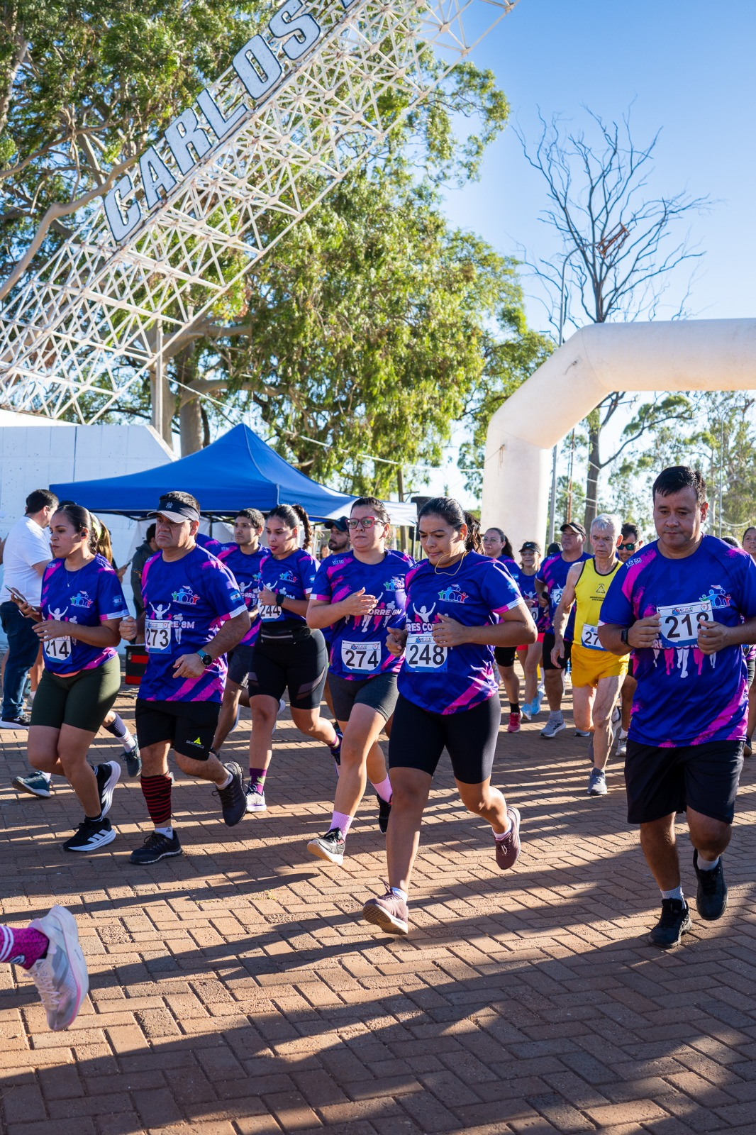 Durante el desarrollo de la actividad se dispusieron puestos de hidratación a lo largo del recorrido, y al finalizar la carrera los participantes recibieron frutas como parte de la asistencia y recuperación tras el esfuerzo físico.