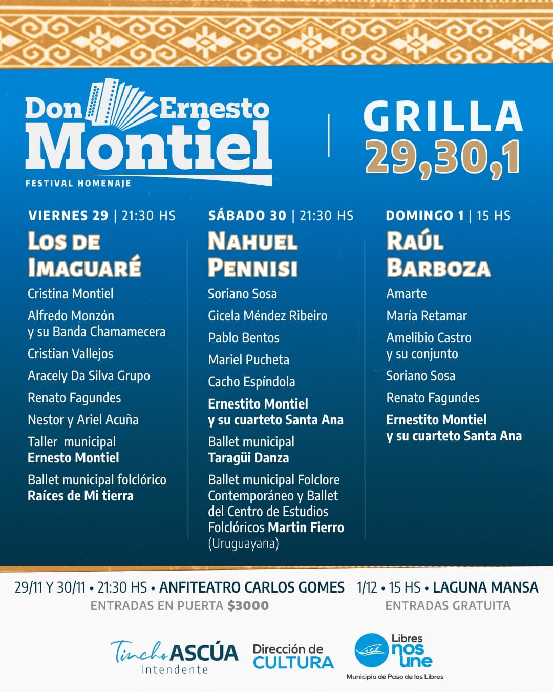 El Festival Homenaje a Don Ernesto Montiel se llevará a cabo desde hoy hasta el domingo en Paso de los Libres. Es un evento cultural promete tres jornadas inolvidables para los amantes de la música chamamecera y las tradiciones locales.