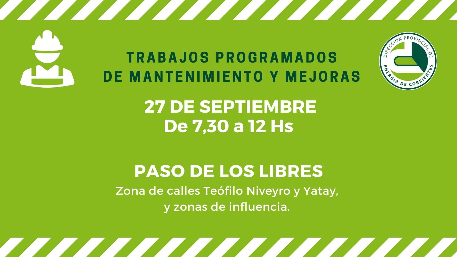 Con motivo de realizar mejoras en el servicio, operarios de la Dirección Provincial de Energía de Corrientes (DPEC) ejecutarán hoy en Paso de los Libres tareas de cambio de cables convencionales por nuevos cables preensamblados, por lo cual se interrumpirá el suministro de energía eléctrica en el horario de 7,30 a 12.