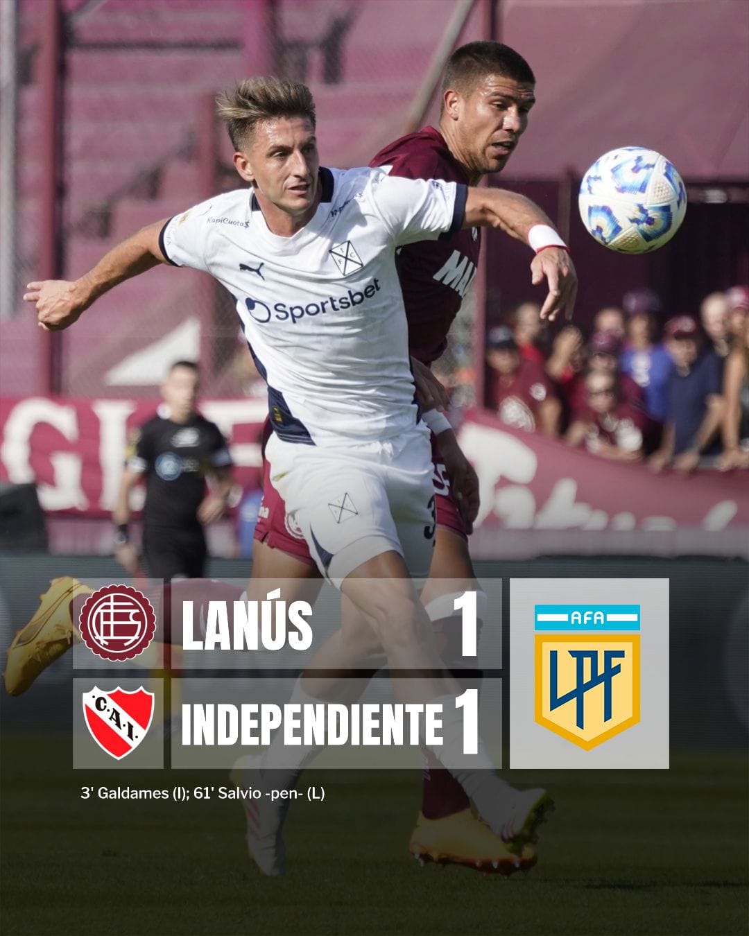 Lanús y Independiente se enfrentaron por la Liga Profesional. El partido terminó 1 – 1. Los goles los hicieron Pablo Galdames (3′ PT) y Eduardo Salvio (15′ ST).