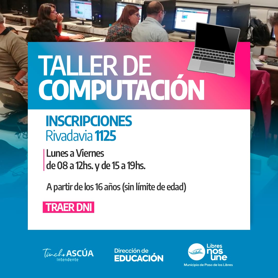 La Dirección de Educación del Municipio de Paso de los Libres anunció la apertura de inscripciones para el Taller de Computación; las cuales se pueden concretar en la sede de Rivadavia 1.125, de lunes a viernes, en dos turnos: de 8 a 12 y de 15 a 19.