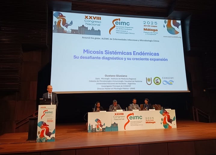 Gustavo Giusiano, jefe del Departamento de Micología del Instituto de Medicina Regional (IMR) de la Universidad Nacional del Nordeste (UNNE), participó como expositor en la Mesa Redonda Internacional “Around the Globe” durante el XXVIII Congreso Nacional de la Sociedad Española de Enfermedades Infecciosas y Microbiología Clínica (SEIMC), celebrado días atrás en Málaga, España.