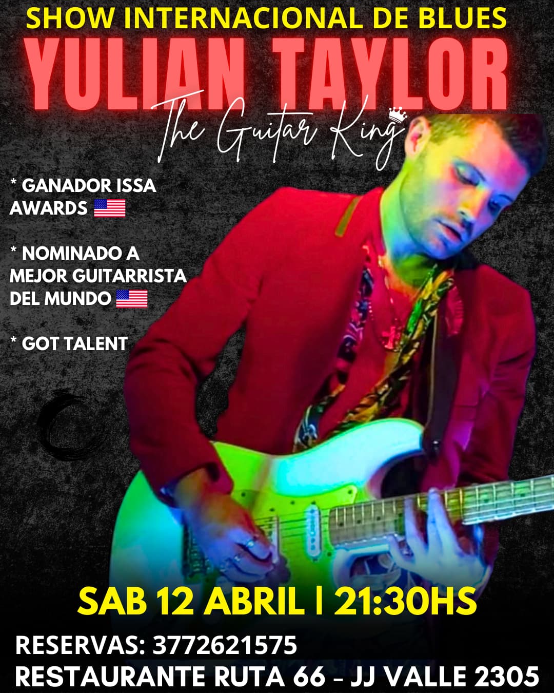 Antes, la semana que viene Yulian Taylor estará engalanando el escenario de Ruta 66 con un Show Internacional de Blues. Será el sábado 12 de abril, cuando The Guitar King inicie su repertorio desde las 21,30 horas.