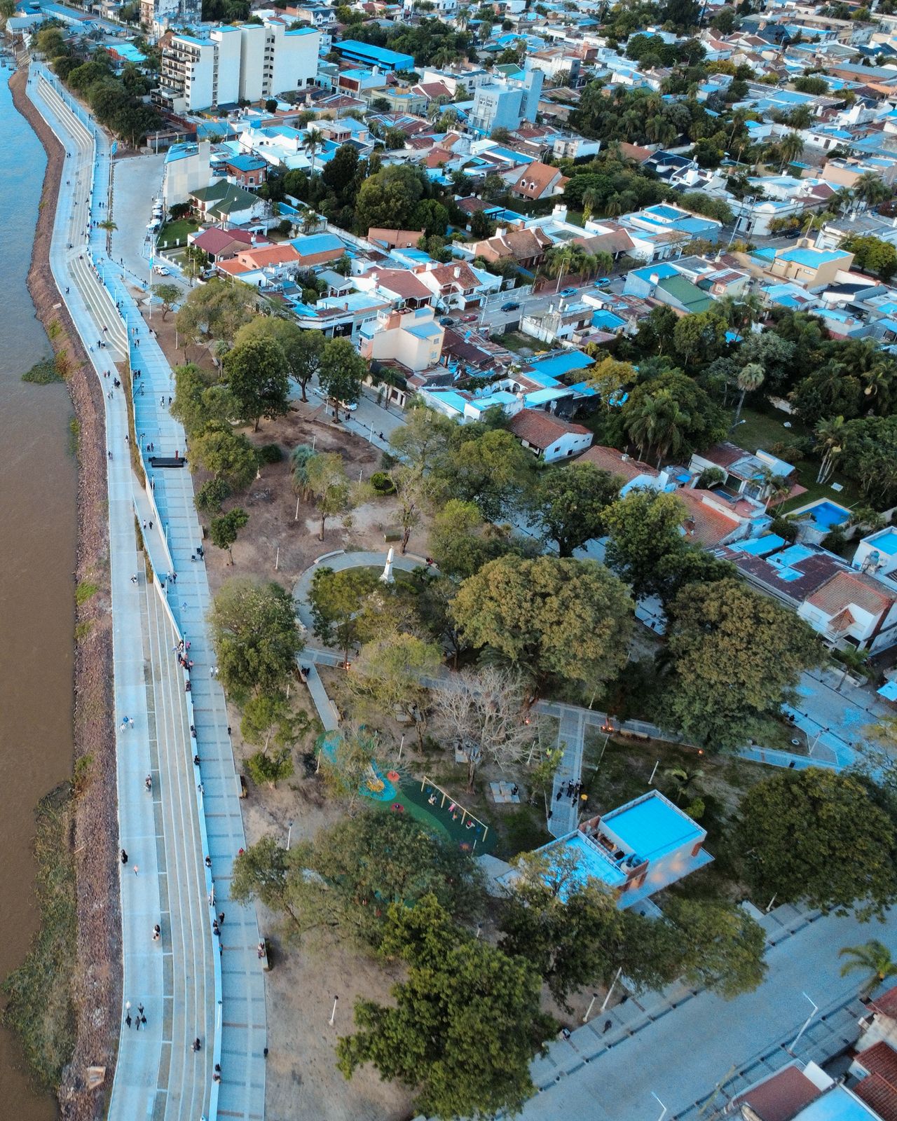 Lo que comenzó como una reconstrucción puntual derivó en un proyecto de mayor escala: cerca de 500 metros de nueva Costanera desarrollada en dos niveles, con vistas panorámicas al Paraná en el superior y acceso al entorno natural en el inferior.