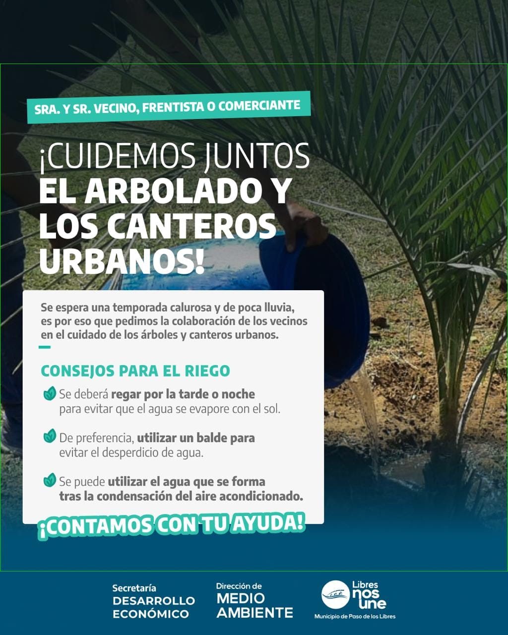 La Dirección de Medio Ambiente del Municipio de Paso de los Libres lanzó una campaña para fomentar la participación de los vecinos en el cuidado del arbolado y los canteros urbanos durante la temporada de primavera y verano.