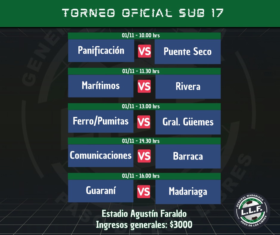 Organizada por la Liga Libreña de Fútbol (LLF), se desarrollará este sábado 1 de noviembre la cuarta fecha del Torneo Sub17, en el estadio “Agustín Faraldo”.