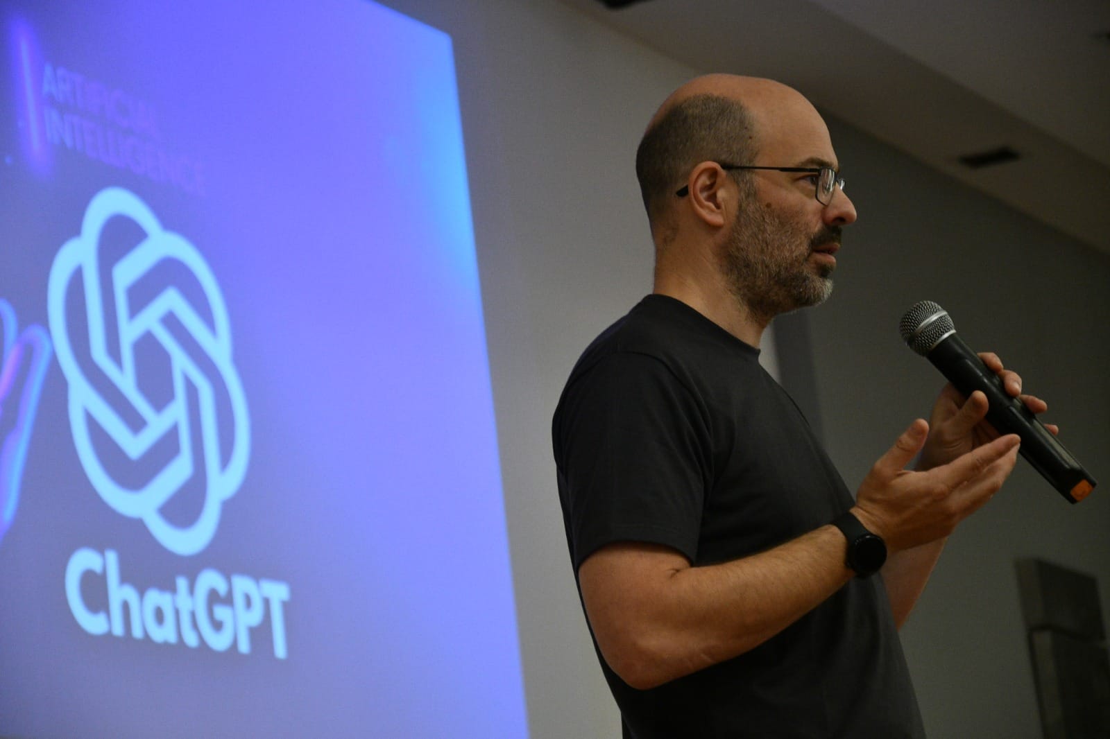 Pero la “explosión” de la IA se puede ubicar en el 2022 cuando aparece el ChatGPT. “Y a quién enfrenta?”, preguntó el disertante a los presentes. “A todos nosotros”, respondió y explicó que “ahora existe una super computadora abierta al público, gratis, que maneja el lenguaje de alguna manera mejor que nosotros”.