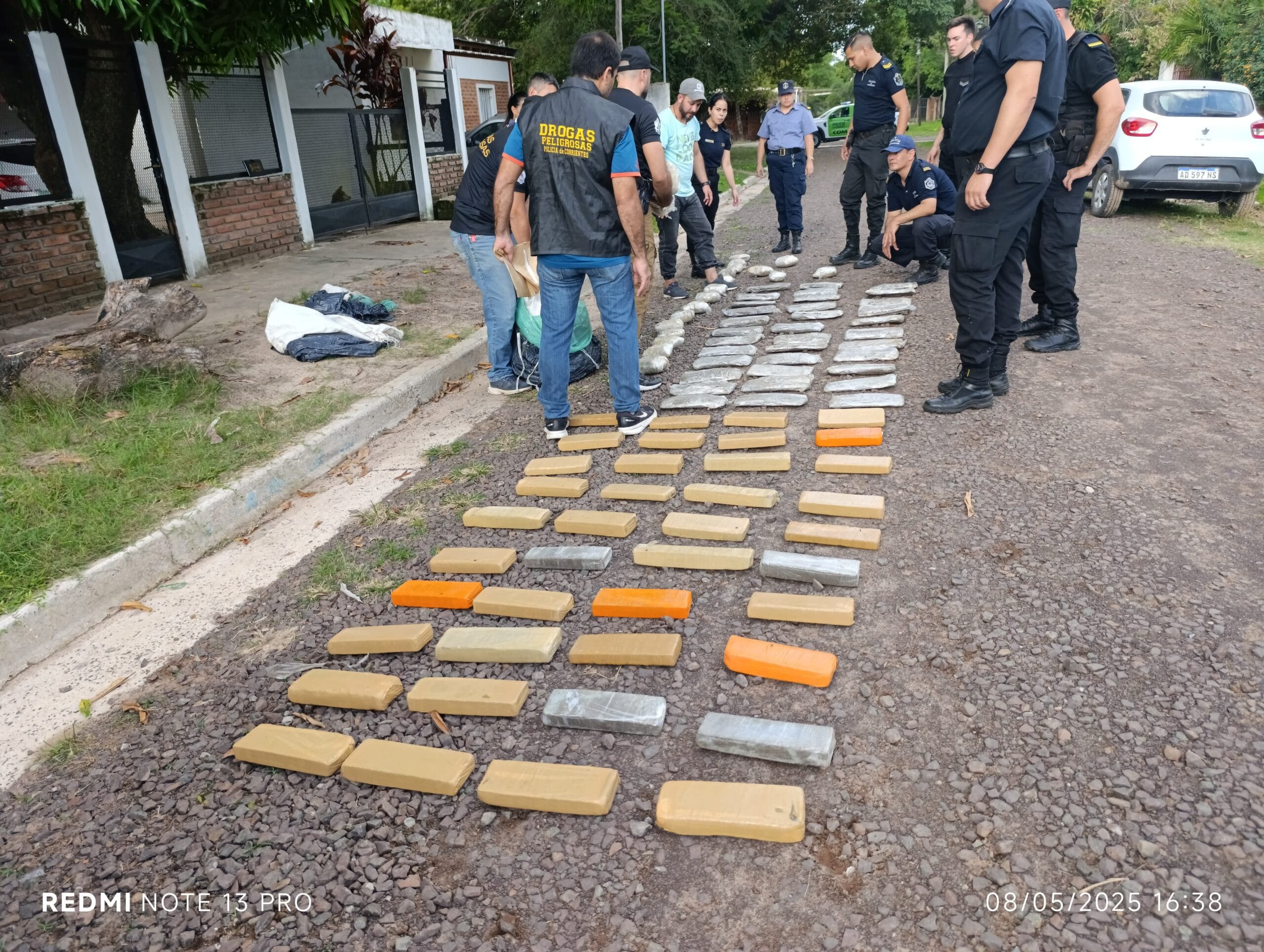 A partir de ello, con la previa autorización de las autoridades judiciales federales en turno, procedieron a verificar el mismo, logrando determinar que se trataría de 4 bultos grandes conteniendo en su interior 117 envoltorios de sustancia de origen vegetal, por lo que se solicitó la valiosa colaboración de personal de la Dirección General de Drogas Peligrosas y Crimen Organizado de la Policía de Corrientes, quienes efectuaron el correspondiente “narcotest”; el cual arrojó positivo para marihuana, dando un total aproximado de casi 80 kilogramos.