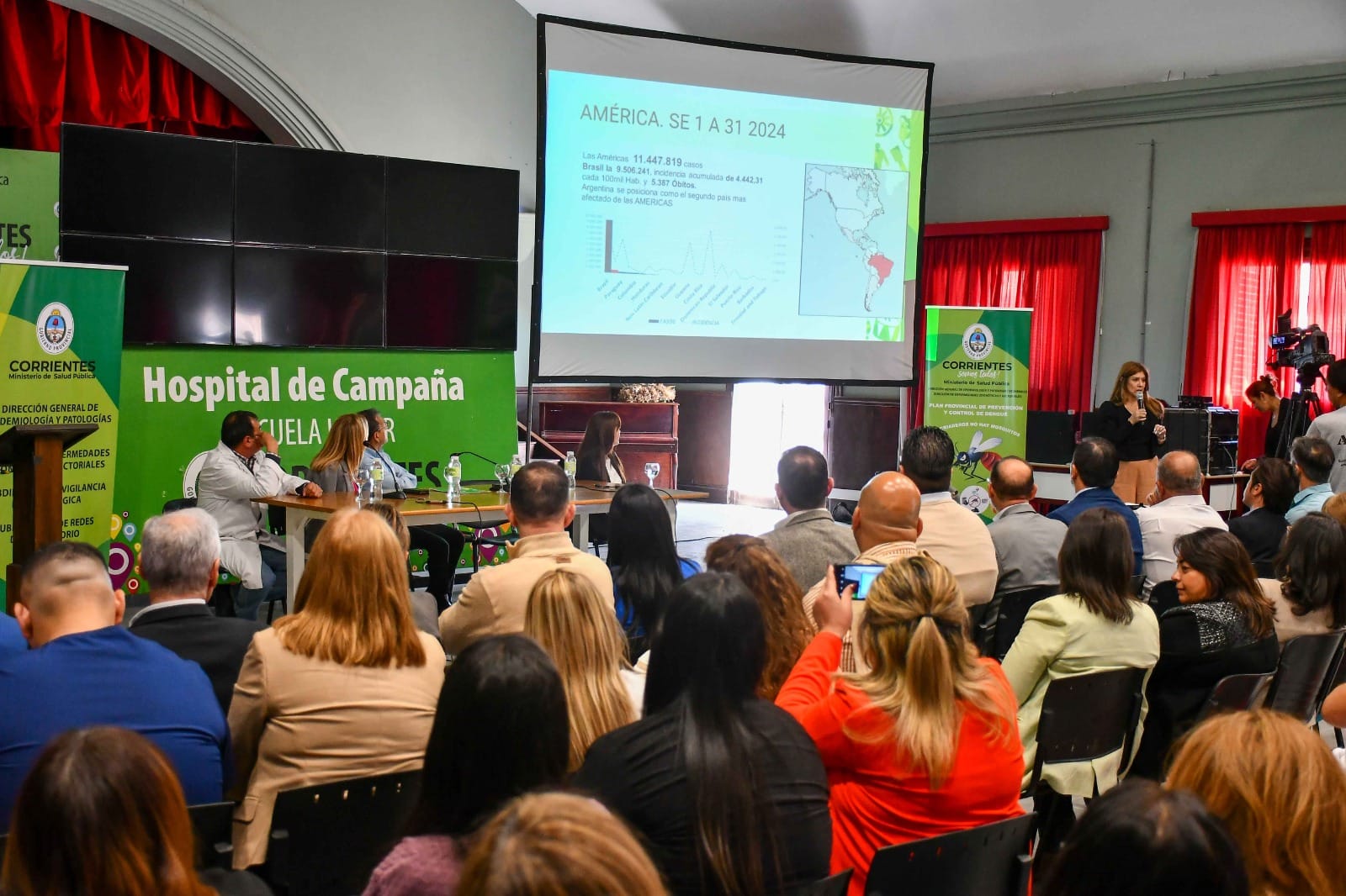 Estuvieron también en el acto, en el auditorio del Hospital de Campaña, el director ejecutivo del nosocomio, Alberto Arregín; el subsecretario de Gestión Educativa, Julio Navías; la directora de Zoonosis y Enfermedades Vectoriales, Claudia Benítez Sosa; el secretario de Salud de Capital, Rafael Corona; e intendentes de localidades vecinas.