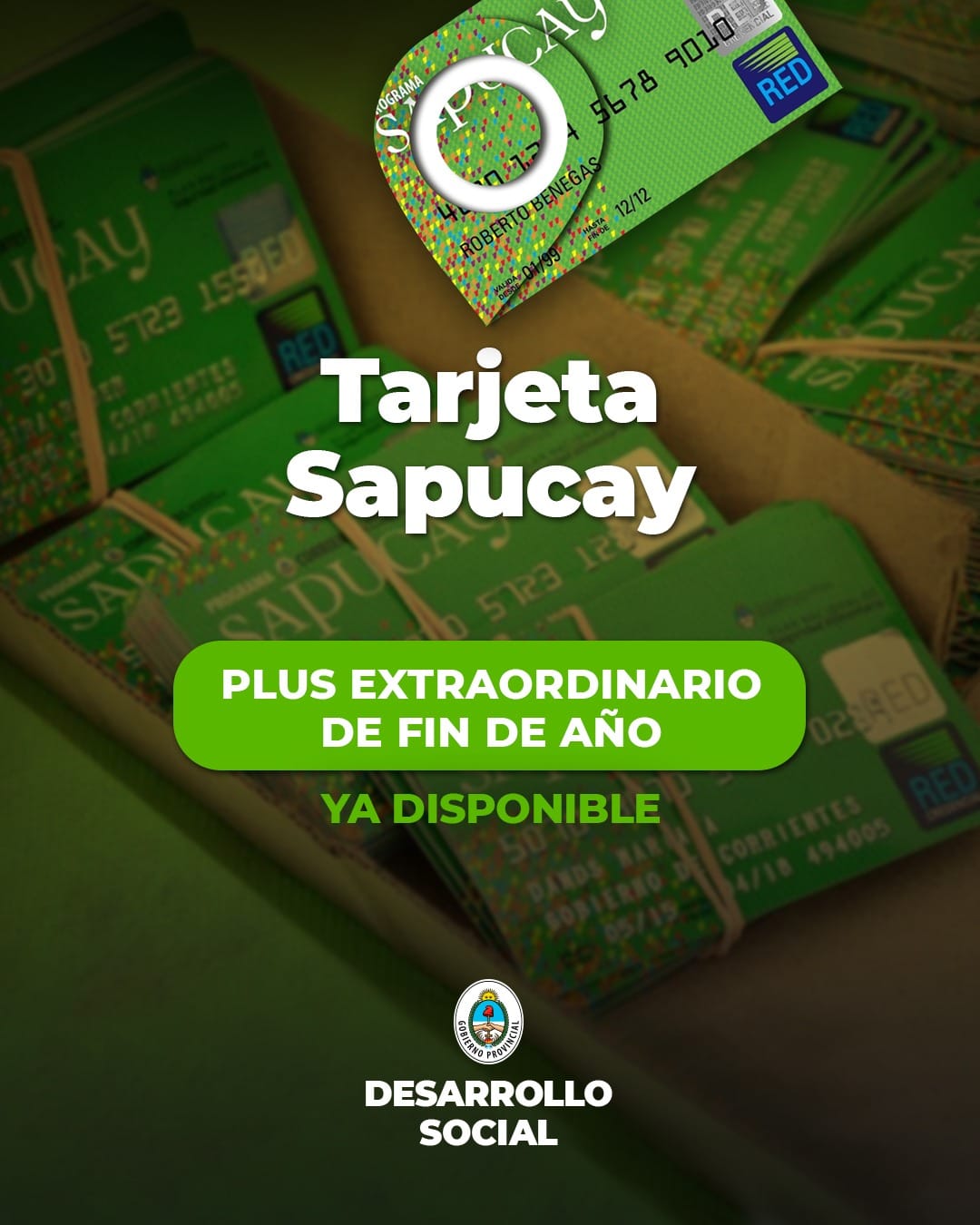 El Ministerio de Desarrollo Social del Gobierno de la Provincia de Corrientes hizo saber que, desde esta mañana, los beneficiarios de la Tarjeta Sapucay tienen habilitado un plus extraordinario de fin de año.