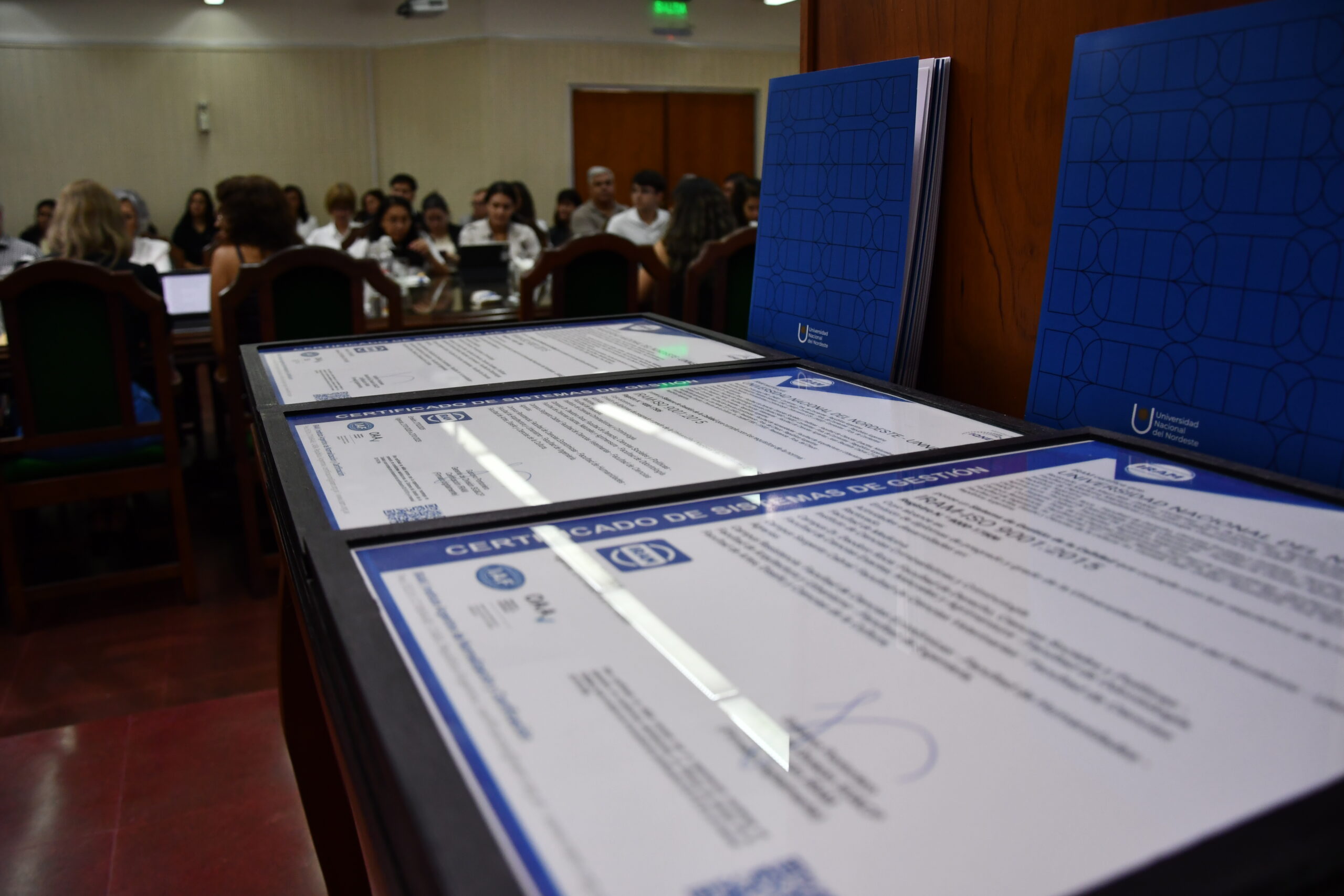 Como forma de celebrar la distinción obtenida, este miércoles se realizó un acto de entrega de copias autenticadas de la certificación IRAM a los equipos técnicos de las distintas unidades académicas y Secretarías Generales de la UNNE que participaron de las instancias que posibilitaron alcanzar la acreditación de calidad IRAM.