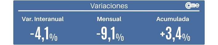 En noviembre, las ventas minoristas PyMEs registraron una variación interanual de -4,1% a precios constantes. En tanto, en la comparación mensual desestacionalizada, la variación fue de -9,1%. En lo que va del año las ventas acumulan un incremento interanual del 3,4%.