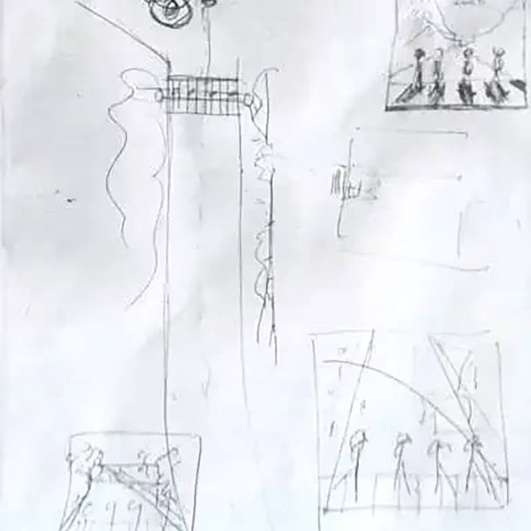 El boceto de la tapa del disco dibujado por Paul y los aportes hechos en lápiz por el fotógrafo Iain MacMillan