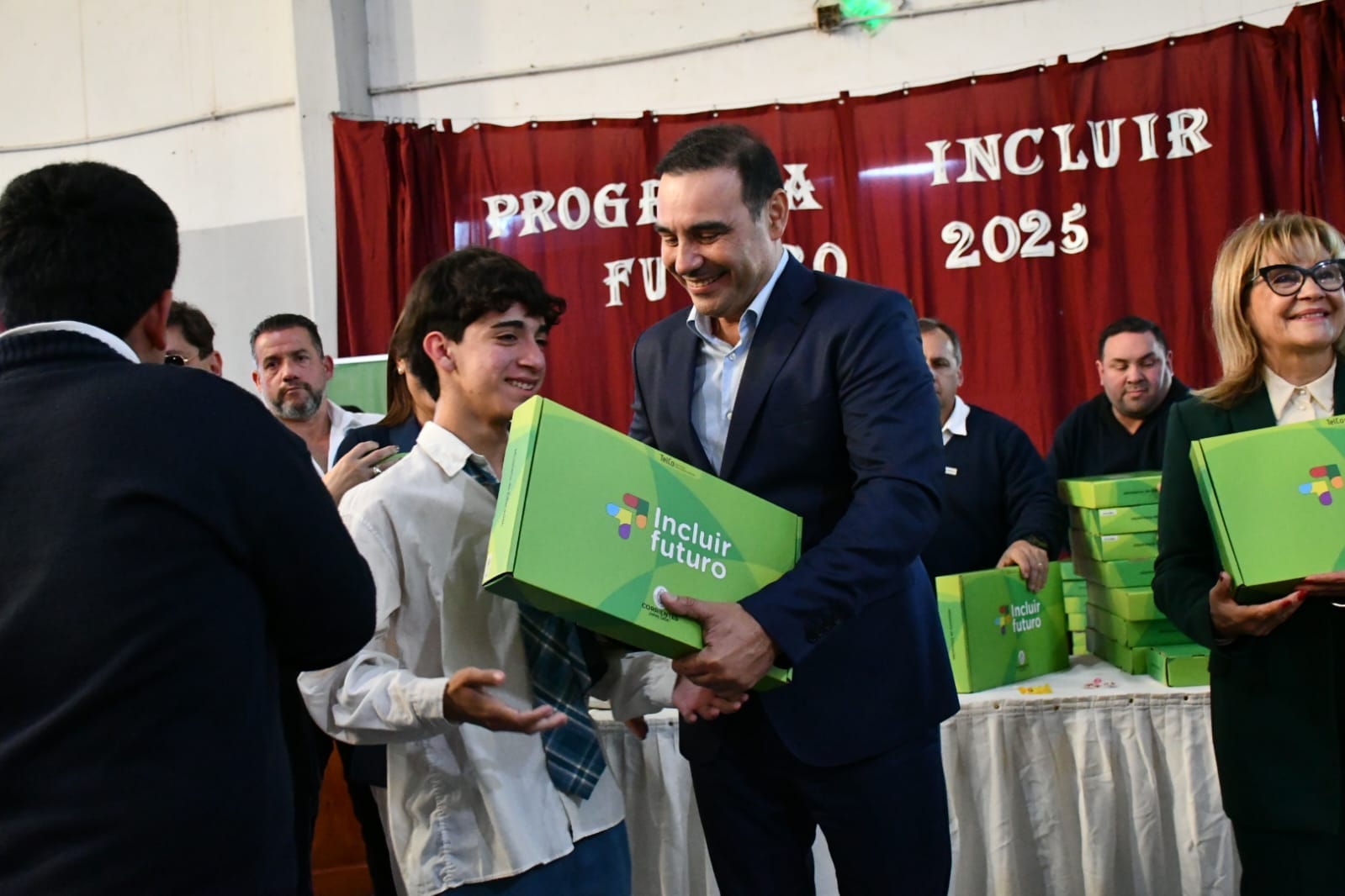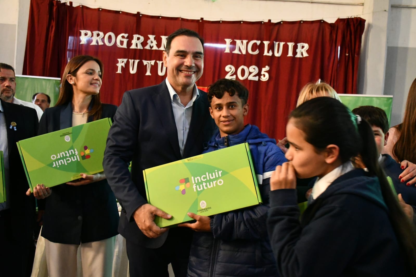 El gobernador Gustavo Valdés junto a la intendente de Bella Vista, Noelia Bazzi, entregó hoy 1.195 netbooks en el predio de la Escuela Normal, garantizando la apuesta e inversión a la educación pública. Ahora, el 100% de los alumnos del Secundario de la localidad cuenta con sus computadoras.