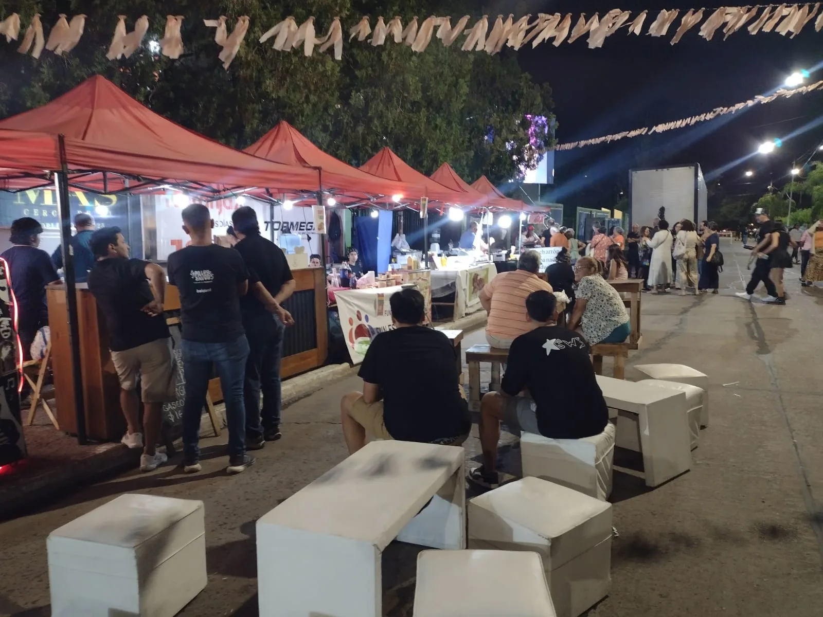 Un grupo conformado por 6 artesanos se encuentra ubicado en los stands dentro del predio del “Cocomarola”. Otro grupo de emprendedores gastronómicos se encuentra por calle Patagonia y Sarmiento, y ofrece sus exquisiteces a los espectadores que llegan o salen del lugar.