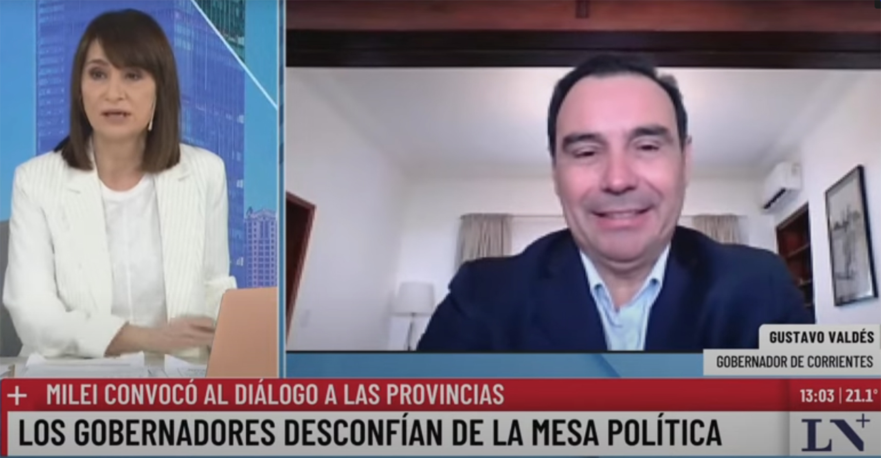 El Gobernador de Corrientes, habló con La Nación+ y se refirió a la relación con el Gobierno de Milei y la chance de participar en una mesa de diálogo. Además, remarcó que “no tengo problemas en colaborar y trabajar”.