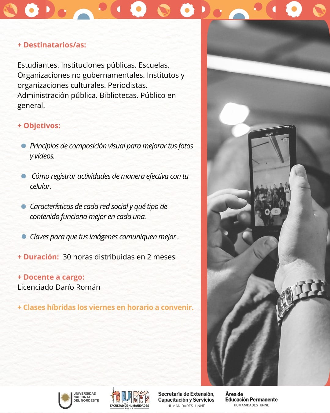 En un mundo cada vez más visual y digital, desde la Facultad de Humanidades de la Universidad Nacional de Nordeste (UNNE) se anunció una nueva edición del taller “El celular como herramienta de registro para redes sociales”, una capacitación destinada a estudiantes, periodistas, docentes, instituciones públicas y cualquier persona interesada en mejorar sus habilidades de registro fotográfico y audiovisual con dispositivos móviles.